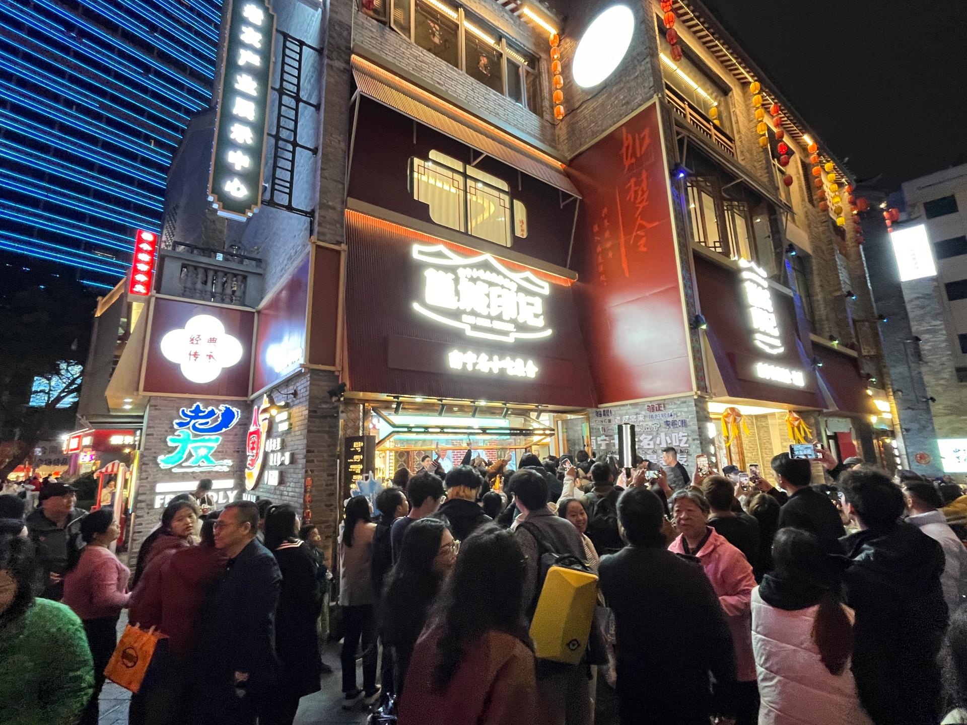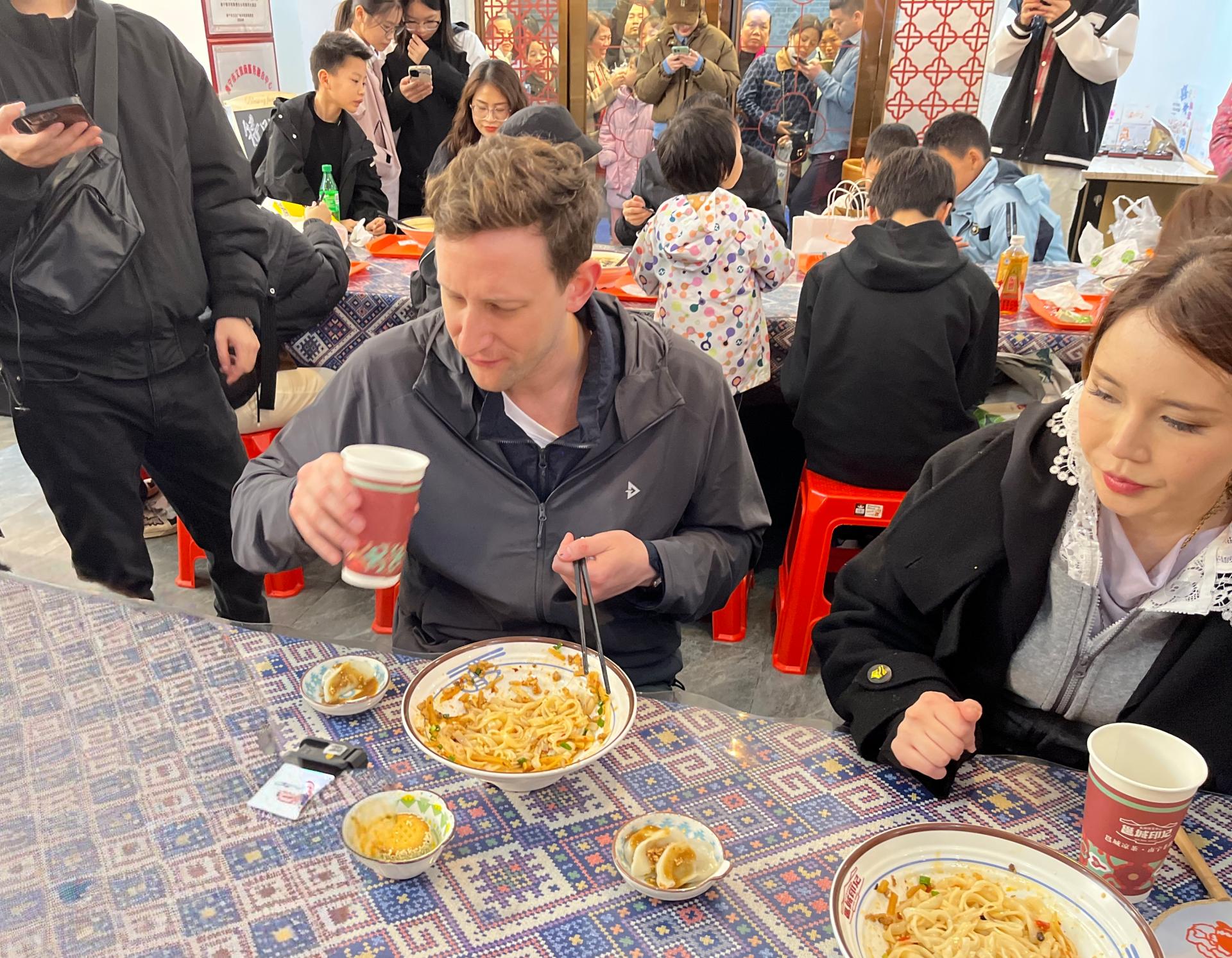 假期期間,邕城印記舉辦“夜研學(xué)”主題活動(dòng),吸引南寧市第一職校的學(xué)生到場參加廣西非遺“麼乜”研學(xué),通過"夜間課堂+沉浸參與"的創(chuàng)新形式,讓非遺研學(xué)課程成為學(xué)生群體過節(jié)的潮流選擇。與此同時(shí),國際友人埃文·凱爾也在邕城印記感受了一波“老友風(fēng)情”,逐一品嘗南寧老友粉、邕城涼茶等南寧名小吃,生動(dòng)詮釋“美食無國界”的文化理念。據(jù)統(tǒng)計(jì),在“廣西三月三”假期期間,邕城印記接待市民游客超1萬人次,銷售南寧老友粉2000多碗。