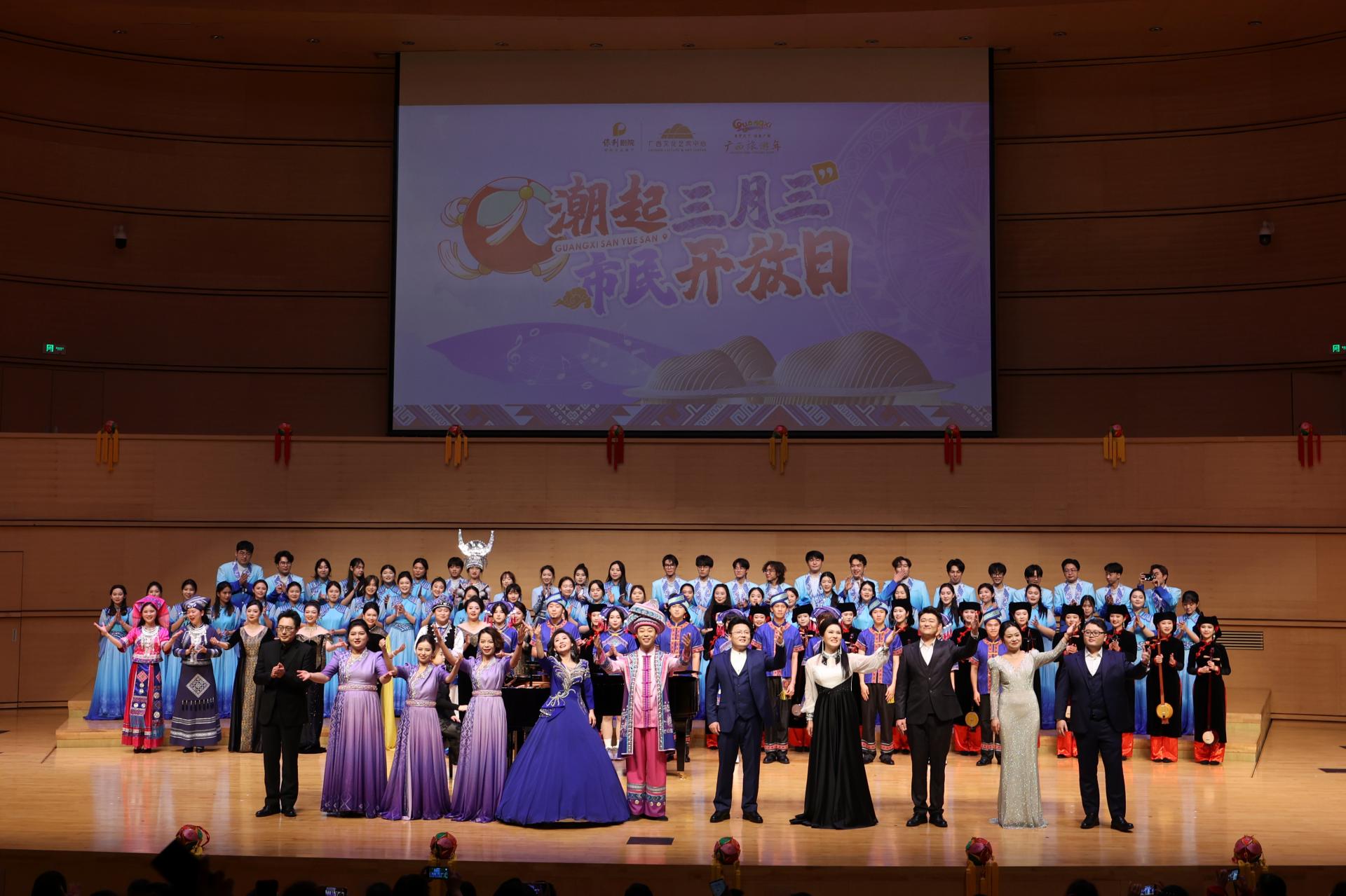 廣西文化藝術(shù)中心精心策劃并成功舉辦一系列高品質(zhì)的文藝活動(dòng),為節(jié)慶文化內(nèi)涵提升新活力。3月31日,廣西交響樂團(tuán)于音樂廳深情演繹 “歡慶廣西三月三” 交響音樂會。音樂會以交響樂形式,創(chuàng)新性地呈現(xiàn)《北部灣音詩》《印象三月三》等飽含壯鄉(xiāng)風(fēng)情的經(jīng)典曲目,實(shí)現(xiàn)了高雅藝術(shù)與民族元素的有機(jī)融合,為現(xiàn)場觀眾帶來一場震撼的視聽盛宴。
