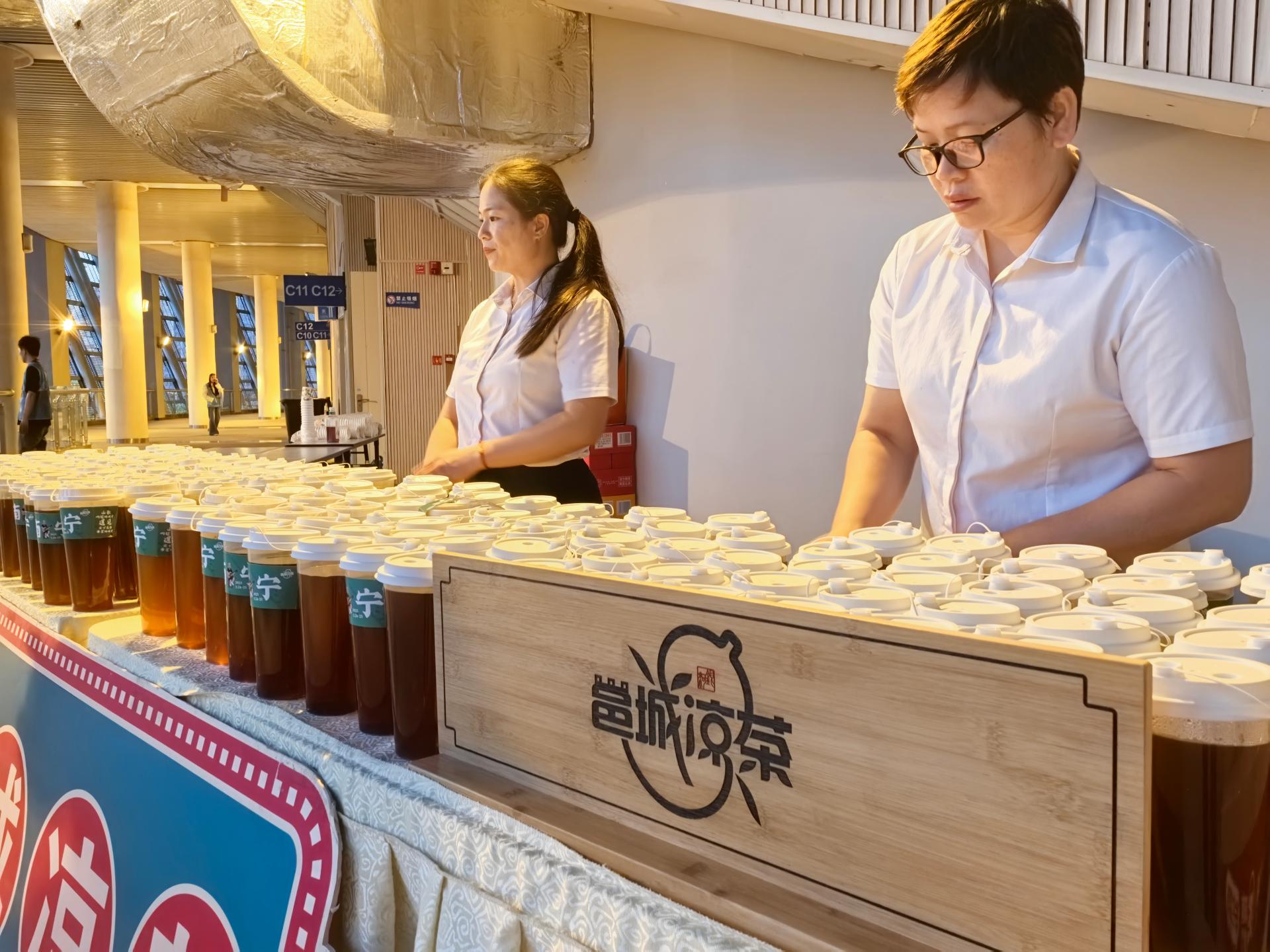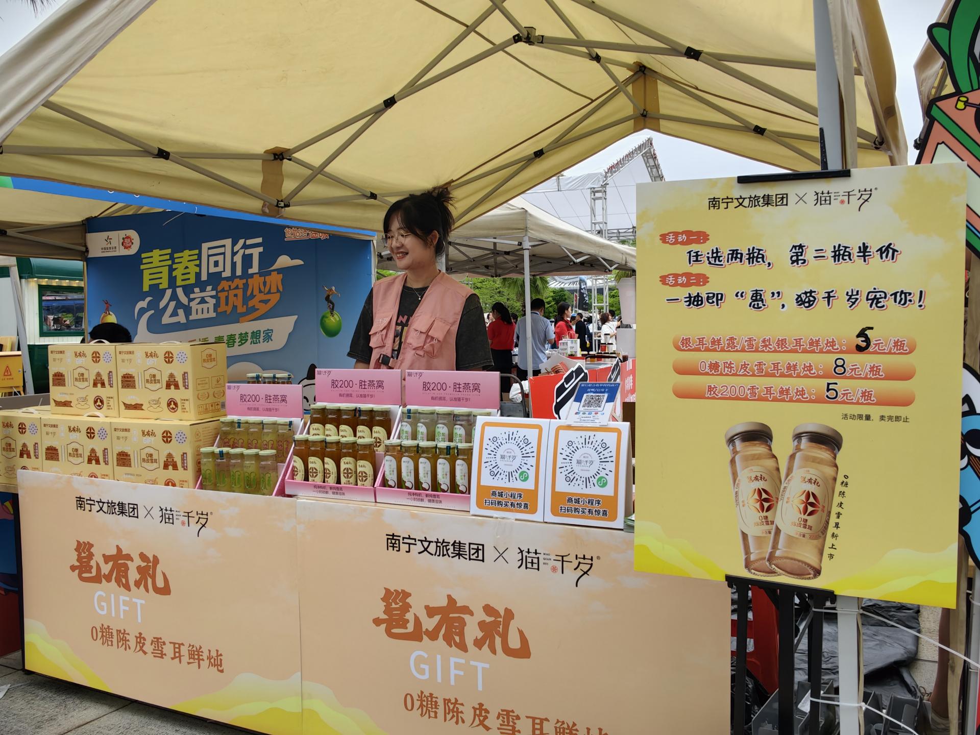 為豐富演唱會外延體驗(yàn),南寧文旅集團(tuán)精心策劃一系列配套活動。在廣西體育中心噴泉廣場,打造47個(gè)攤點(diǎn)的廣西非遺特色演唱會市集。南寧文旅集團(tuán)聯(lián)合貓千歲品牌出品的“邕有禮”銀耳系列好禮成為市集的焦點(diǎn);銀河公司旗下的古城老友粉、邕城涼茶以及文創(chuàng)雪糕讓歌迷們大飽口福,“邕城涼茶”更是連續(xù)兩天在開場前被搶購一空;五象山莊在體育館內(nèi)區(qū)域設(shè)立“五象能量站”,提供薄荷檸檬水、凍檸樂、手作軟歐包等,供粉絲進(jìn)行現(xiàn)場的能量補(bǔ)給。據(jù)統(tǒng)計(jì),為期兩天的演出,共吸引3萬歌迷體驗(yàn)市集活動。
