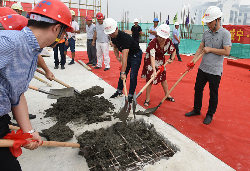 威寧鄰家股份公司副總經(jīng)理謝子穎,威寧建投公司副總經(jīng)理林禮進(jìn)、項(xiàng)目施工單位和監(jiān)理單位人員代表參加了封頂儀式,謝子穎宣布項(xiàng)目封頂,并與威寧建投公司及相關(guān)單位代表共同啟動封頂儀式。