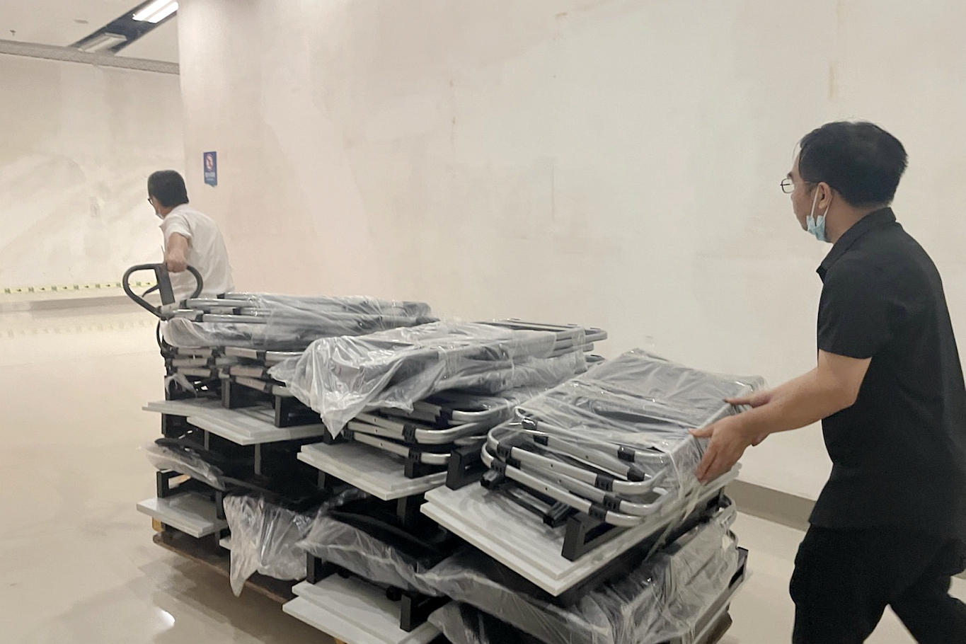 一個(gè)計(jì)算器,是細(xì)致嚴(yán)謹(jǐn)。“89、90、91,數(shù)對(duì)了!這車(chē)一共91頂帳篷!”“大家注意一下,桌子是兩張一組,椅子是三張一組,用透明膠帶捆綁好”,在物資籌備現(xiàn)場(chǎng),公司會(huì)計(jì)手持計(jì)算器認(rèn)真地清點(diǎn)著數(shù)目,面對(duì)繁重的任務(wù)、緊張的時(shí)間,威寧人各司其職,身忙心不亂,當(dāng)發(fā)現(xiàn)桌椅物資不足時(shí),威寧人充分展現(xiàn)出系統(tǒng)內(nèi)互幫互助的友愛(ài)精神,威寧酒店公司與威寧文體公司通力配合,沉著應(yīng)對(duì),采取緊急聯(lián)系供貨商連夜補(bǔ)貨、向其他公司調(diào)借等措施,完成桌子、凳子等物資缺口填補(bǔ)900余件。在緊張忙碌的“加班加點(diǎn)”中趕出效率,保障質(zhì)量!
