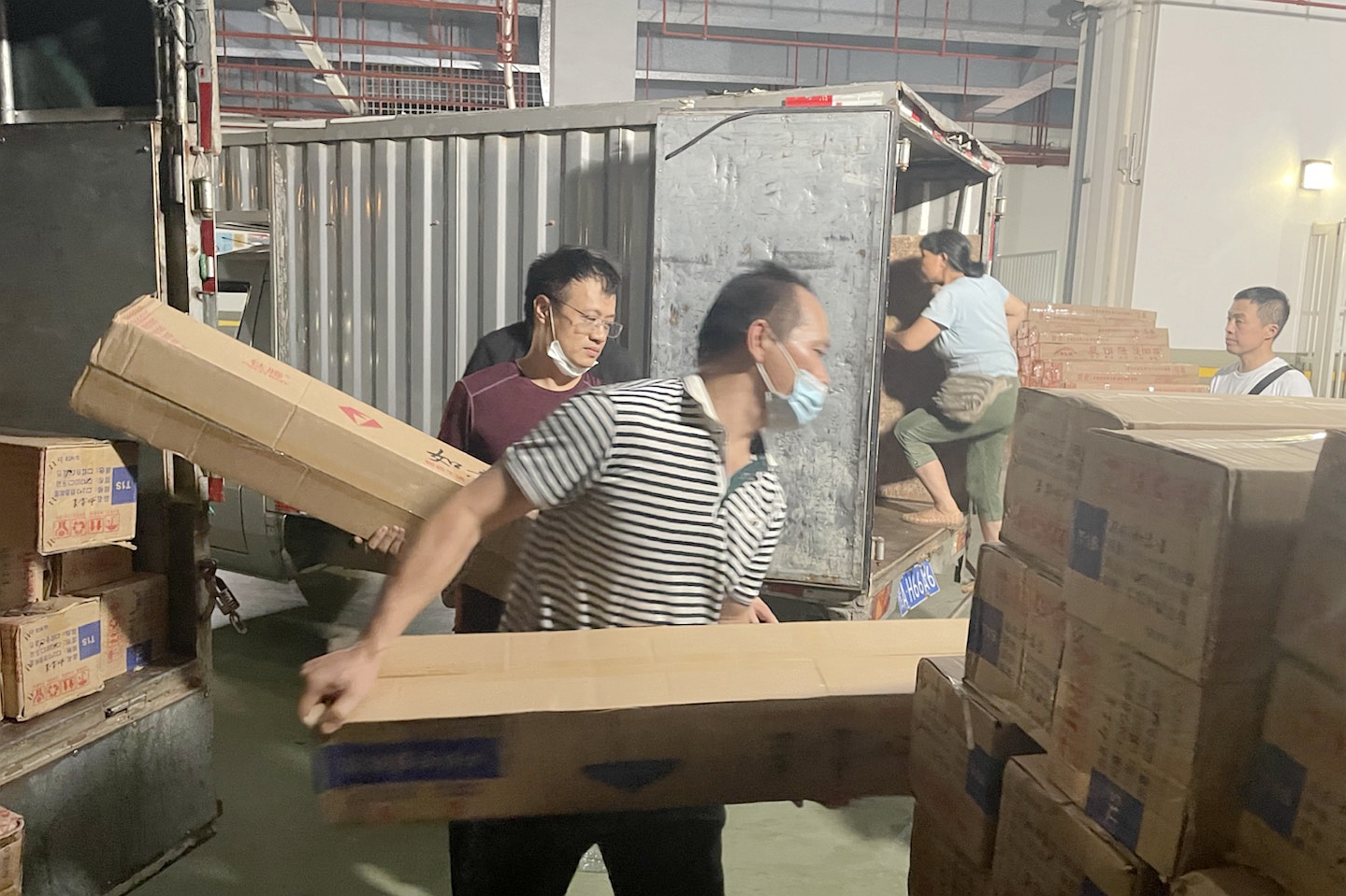 一滴滴汗水,是責(zé)任擔(dān)當(dāng)。“來(lái),擦擦汗,繼續(xù)加油干?!眲傂锻甓攷づ竦睦宵h員巫恒軍擦掉流入眼里產(chǎn)生刺痛的汗水,繼續(xù)投入到緊急工作中?,F(xiàn)場(chǎng)緊張而忙碌,大家默契配合,在悶熱的空氣里汗流浹背,但是手上的動(dòng)作卻越來(lái)越熟練,搬運(yùn)的勁頭絲毫不減。經(jīng)過(guò)近10個(gè)小時(shí)的連續(xù)奮戰(zhàn),19日凌晨2:50,隨著最后一臺(tái)物資配送車(chē)完成裝貨出發(fā),400多個(gè)核酸檢測(cè)點(diǎn)的物資配送圓滿完成。