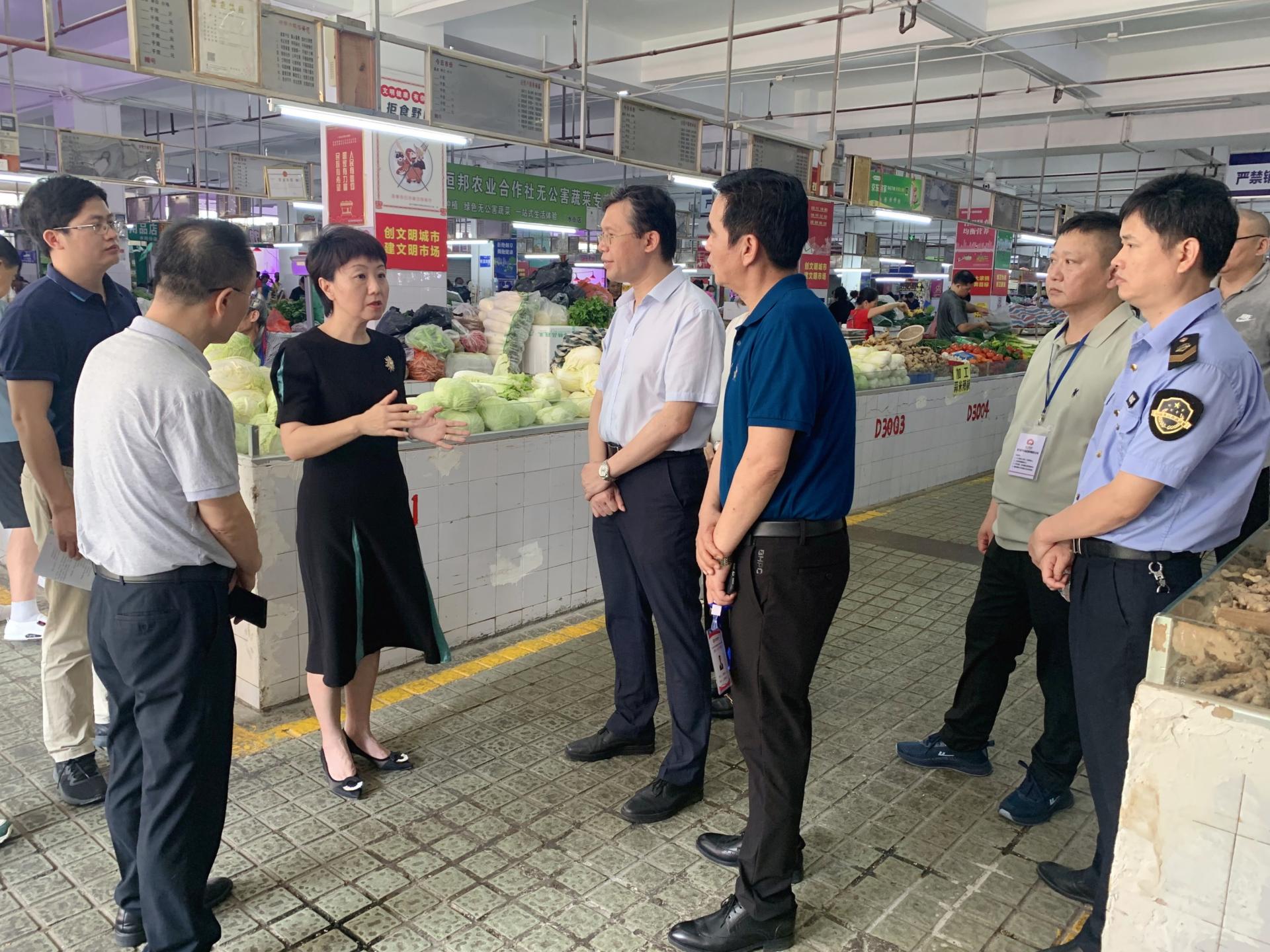劉巧瑛(左三)到水街市場督查創(chuàng)城創(chuàng)衛(wèi)工作
