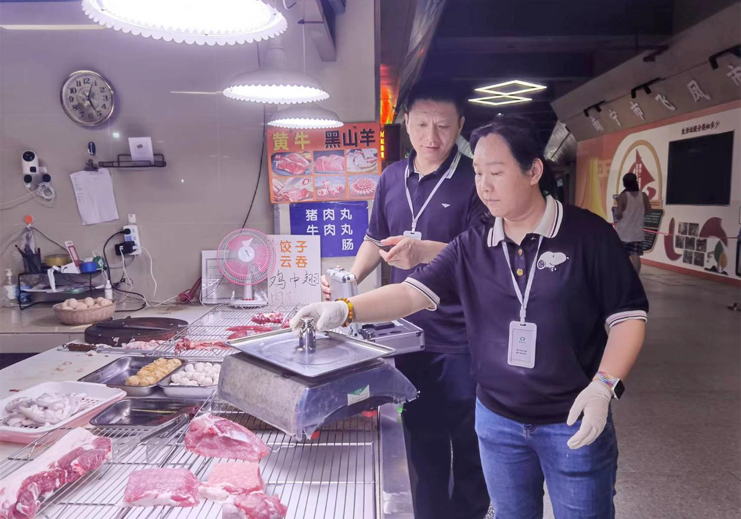 市場管理員定期檢查各攤位稱量器械準(zhǔn)確情況