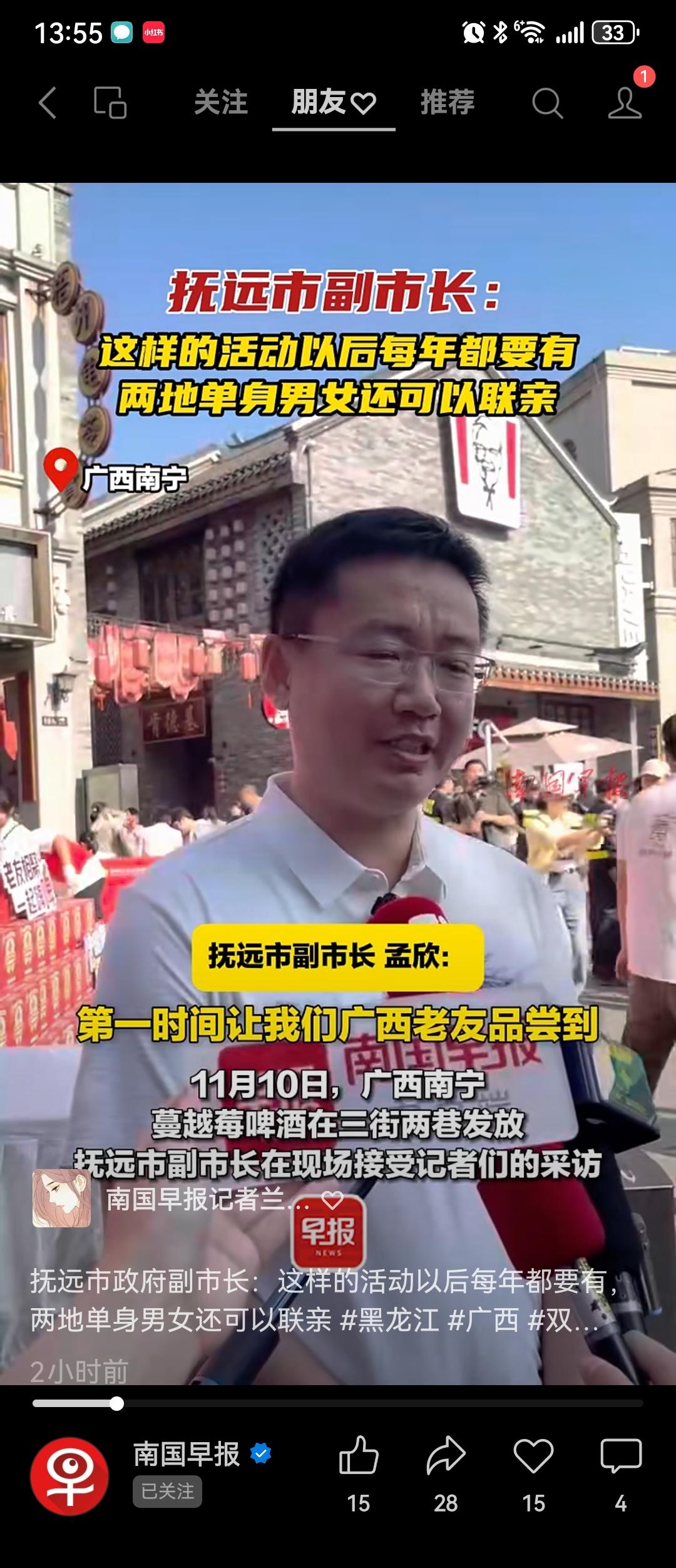 本次活動黑龍江安排了具有特色風(fēng)味的蔓越莓啤酒在南寧文旅集團(tuán)旗下文旅項(xiàng)目發(fā)放,南寧文旅集團(tuán)通過迅速整合集團(tuán)內(nèi)資源,結(jié)合各項(xiàng)目公司自身優(yōu)勢開展定制活動,以蔓越莓啤酒發(fā)放活動再造“南北CP”文旅新熱點(diǎn)。11月10日當(dāng)天,邕州古城·三街兩巷與廣西體育中心的活動現(xiàn)場人頭攢動,市民們熱情高漲,有序排隊(duì),只為親手接過這份來自遠(yuǎn)方的醇香禮物。這場跨越千里的文化盛宴,在廣西南寧絢爛上演,不僅為南寧市民的味蕾帶來了驚喜,更開啟了佳木斯與南寧兩地文化旅游深度交流合作的第二篇章。