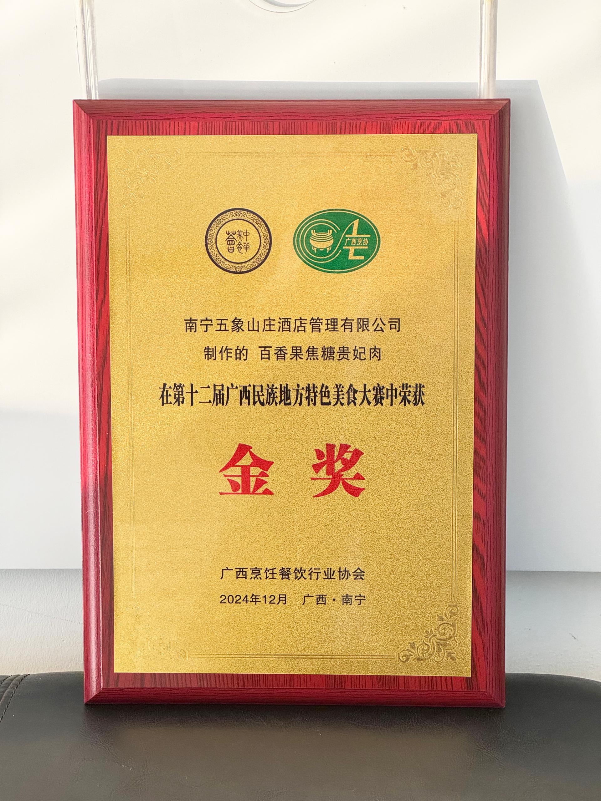 近期,五象山莊廚師團(tuán)隊(duì)在第十二屆廣西民族地方特色美食大賽、全國(guó)沿海城市海鮮烹飪技能爭(zhēng)霸賽中脫穎而出,一舉奪得2024年全國(guó)沿海城市海鮮烹飪技能爭(zhēng)霸賽一等獎(jiǎng);第十二屆廣西民族地方特色美食大賽一項(xiàng)菜品“特金獎(jiǎng)”、一項(xiàng)菜品“金獎(jiǎng)”,在高手如林的美食行業(yè)中盡顯一枝獨(dú)秀。