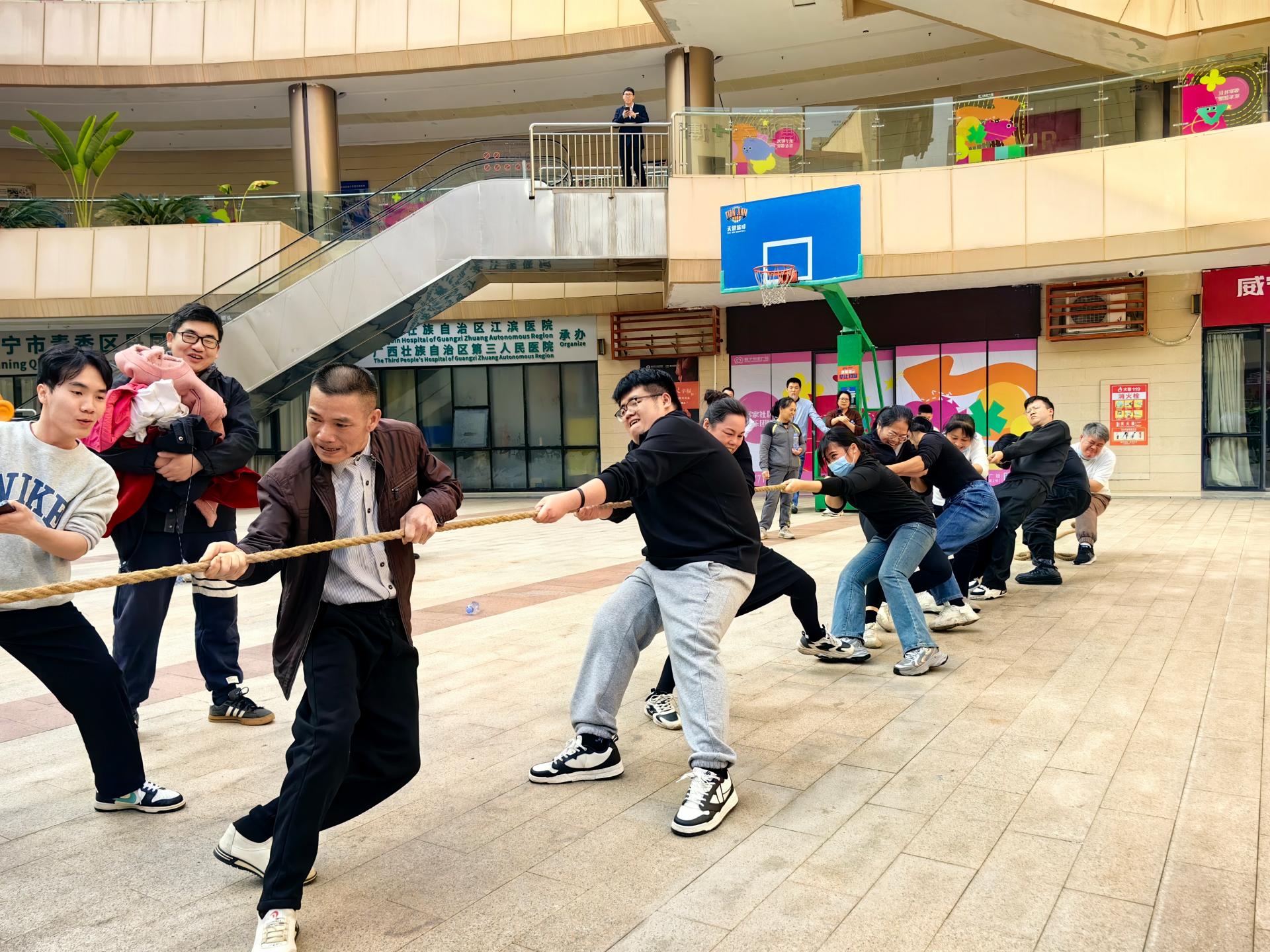 本次社區(qū)新春拔河比賽在威寧·金菊鄰家廣場中庭舉辦,活動吸引了近百名社區(qū)居民和商家代表的積極參與。