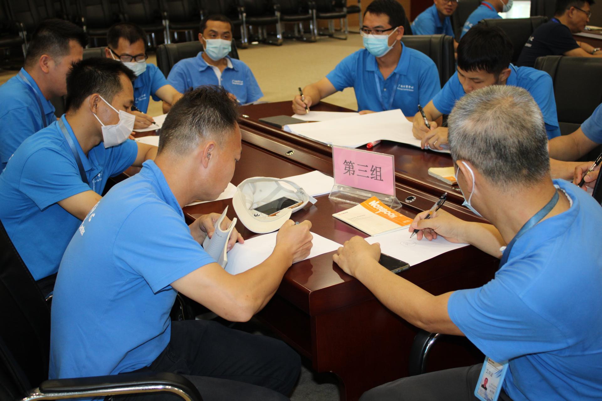 培訓(xùn)過(guò)程中,全體學(xué)員踴躍參與,配合現(xiàn)場(chǎng)模擬演示,大家全情投入,討論熱烈,現(xiàn)場(chǎng)學(xué)習(xí)氛圍濃厚。在小組展示環(huán)節(jié)中,各個(gè)小組活學(xué)活用,不同切入點(diǎn),各有風(fēng)格……運(yùn)行保障部學(xué)員在演練過(guò)程中,將理論學(xué)習(xí)與實(shí)際應(yīng)用相結(jié)合,而場(chǎng)館管理部學(xué)員則在思維導(dǎo)圖的描繪方法上保留了電工工種的特色——思維導(dǎo)圖畫(huà)得像電路板!