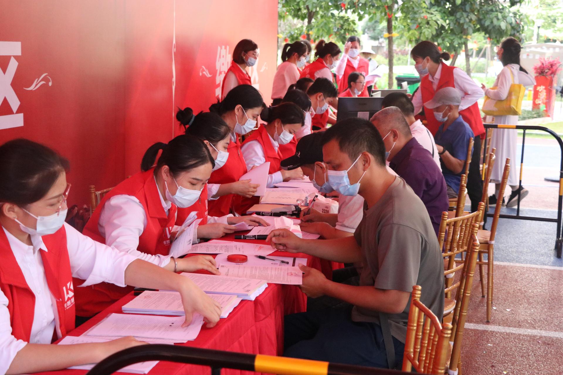 按照疫情的防控要求,項(xiàng)目交付采用的是分批次分樓棟交付。從7月31日起,每天一大早,許多喜盼新家的業(yè)主迫不及待地走進(jìn)威寧·世紀(jì)花城項(xiàng)目,在工作人員的引導(dǎo)下,井然有序地排隊(duì)、登記信息、辦理各項(xiàng)手續(xù)。