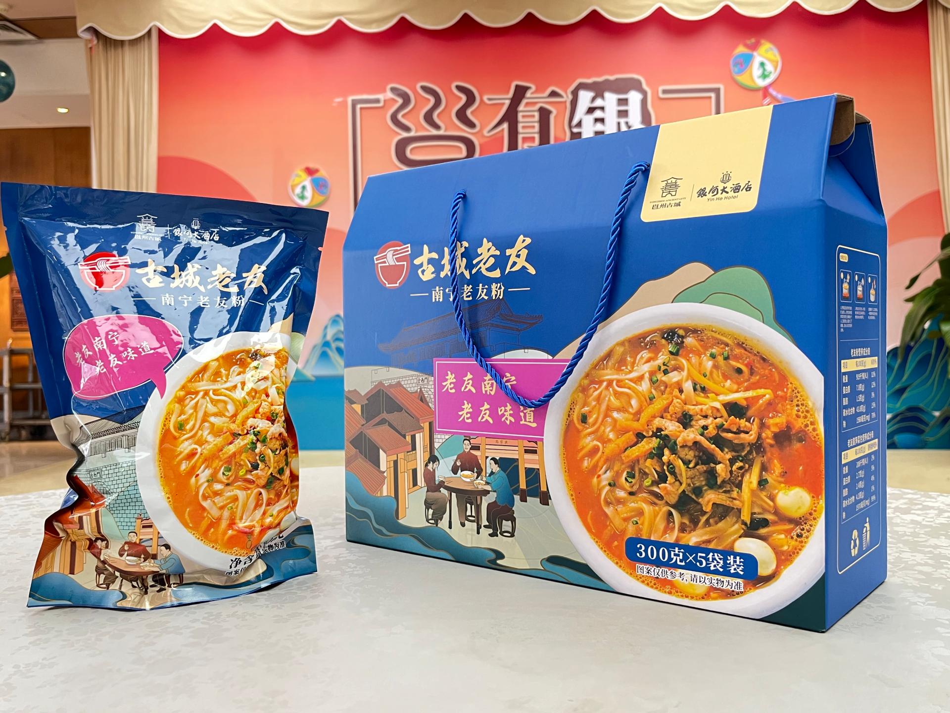 據(jù)悉,銀河大酒店從1989年成立至今,一直致力于傳承和推廣南寧老友粉和老友味道菜品,2024年榮獲“南寧老友粉”傳承基地和“老友味道傳承中心”授牌,推出了“古城老友”袋裝老友粉,目前訂單已覆蓋廣東、湖南、安徽、甘肅、陜西、吉林等地,從“現(xiàn)煮粉”到“方便粉”,從“老師傅掌勺”到“標準化生產(chǎn)”,一袋預包裝老友粉,不僅讓人吃出了“老友味”,更吃出了“創(chuàng)新味”。
