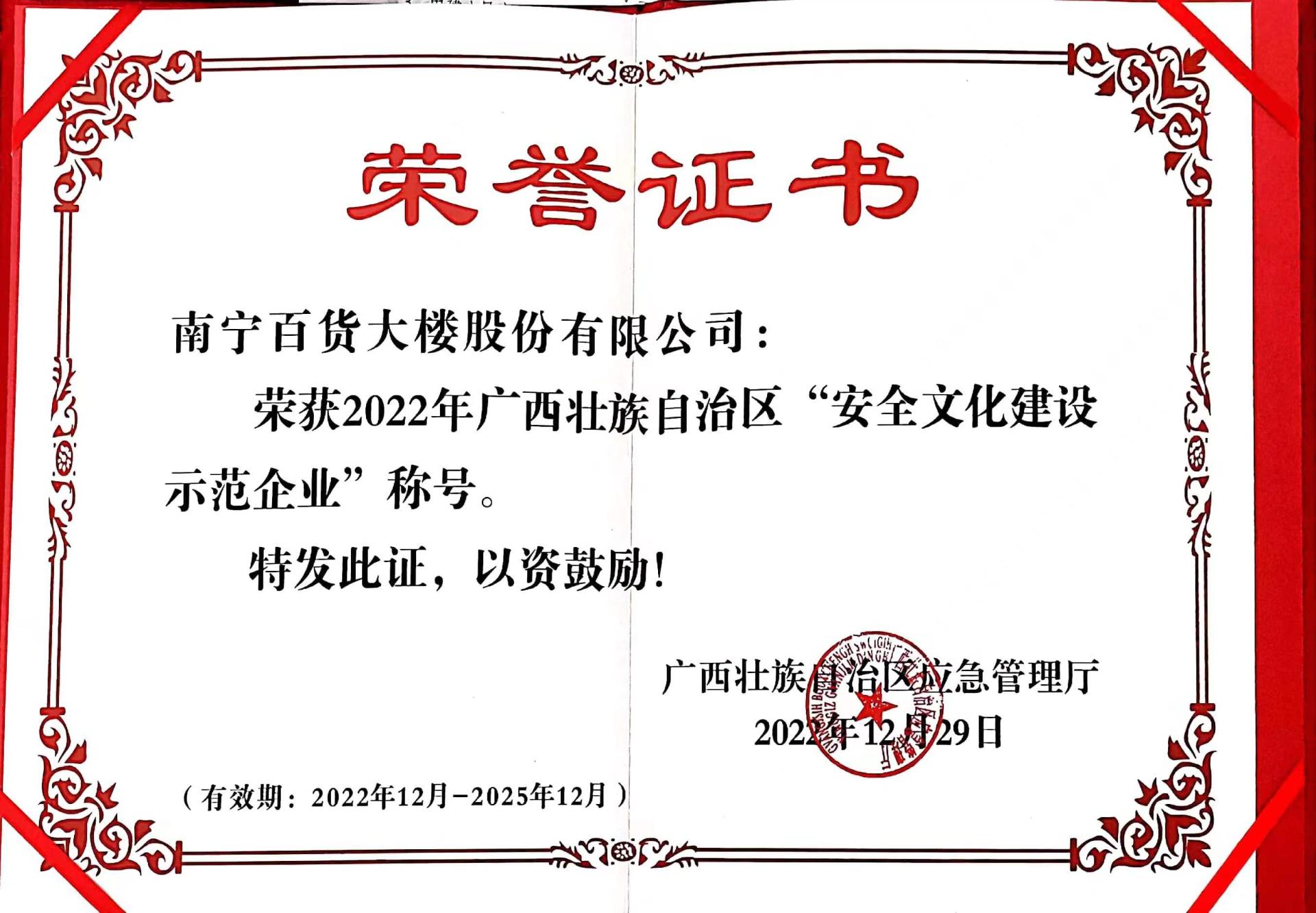 安全是發(fā)展的前提,安全生產(chǎn)問題任何時(shí)候都不能掉以輕心。南寧百貨將以廣西壯族自治區(qū)“安全文化建設(shè)示范企業(yè)”榮譽(yù)為起點(diǎn),不斷鞏固安全文化建設(shè)成果,努力探索安全文化建設(shè)新機(jī)制、新途徑,以安全文化推動(dòng)安全生產(chǎn)工作,以高水平安全服務(wù)企業(yè)高質(zhì)量發(fā)展。