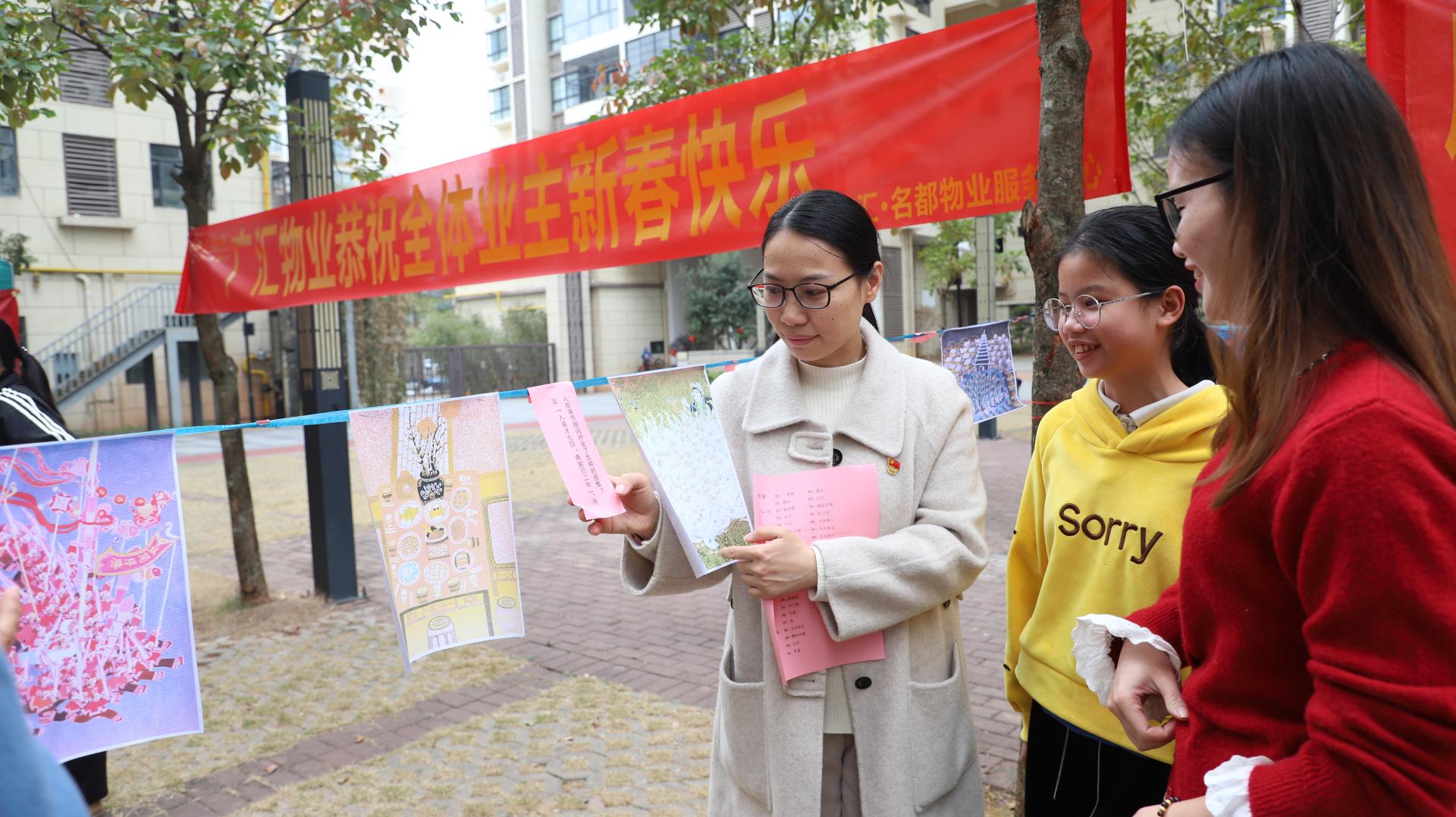 活動現(xiàn)場,社區(qū)工作人員和企業(yè)志愿者們早早地將精心準(zhǔn)備的燈謎懸掛起來,燈謎內(nèi)容涵蓋民族團結(jié)、元宵文化及傳統(tǒng)文化等多個方面,內(nèi)容豐富,趣味盎然。喜氣洋洋的紅色燈謎紙條隨風(fēng)飄動,營造出濃厚的節(jié)日氛圍?;顒右婚_始,居民們便紛紛圍攏過來,認(rèn)真思考,踴躍猜謎。大家或獨自冥思苦想,或與同伴熱烈討論,齊心協(xié)力“攻關(guān)”。趣味燈謎不僅為社區(qū)居民搭建了溝通交流的平臺,更讓居民在猜燈謎的樂趣中,感受到“石榴籽”的緊密相連。