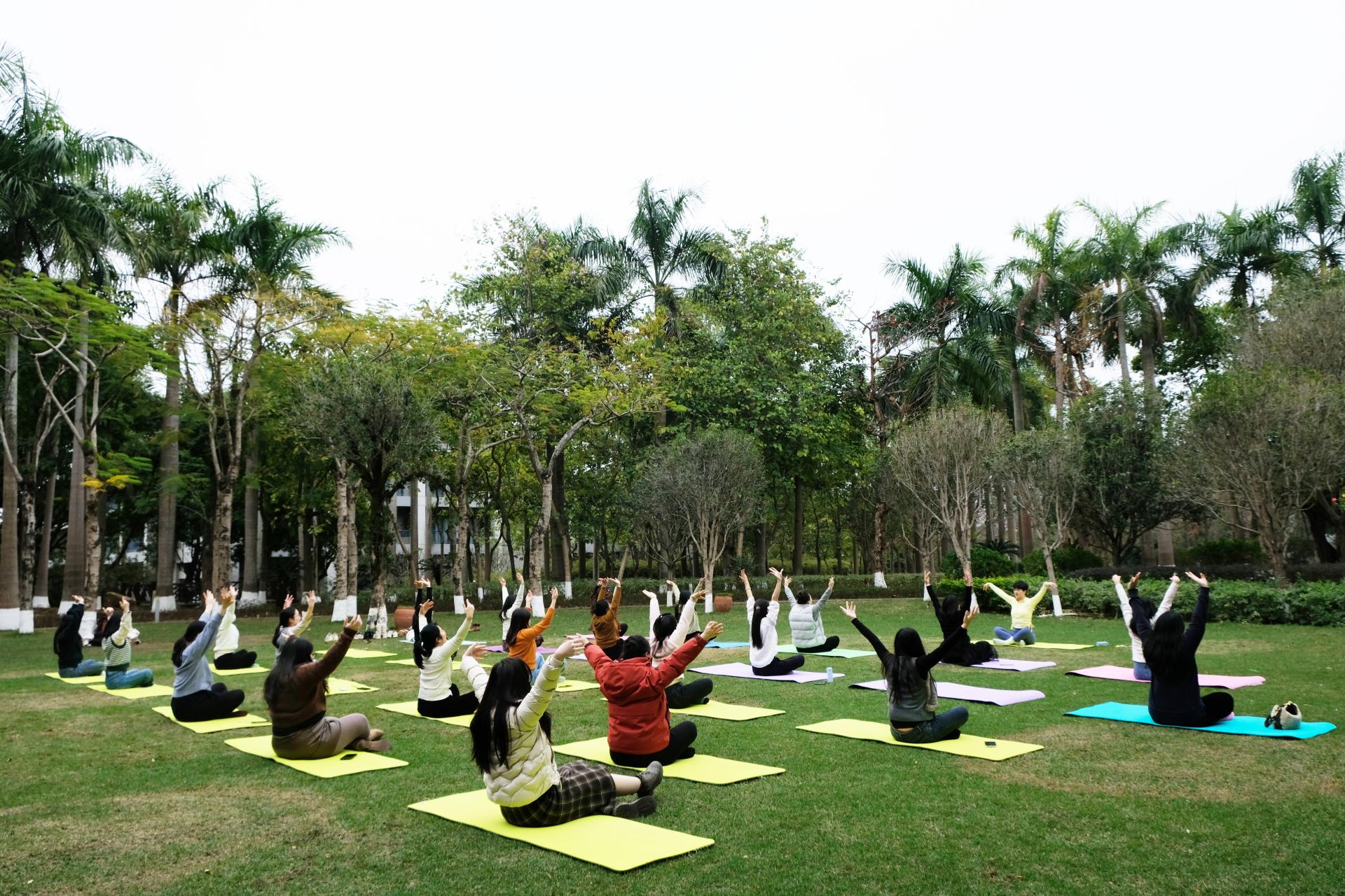 與此同時,五象山莊也為到店賓客準(zhǔn)備了一系列精彩的活動。在山莊的5號樓戶外草坪上,專業(yè)瑜伽教練帶領(lǐng)賓客們體驗(yàn)了戶外瑜伽的魅力。伴隨著輕柔的音樂,客人們沉浸在瑜伽的世界中,通過呼吸和動作的配合,感受身心的和諧與平靜。