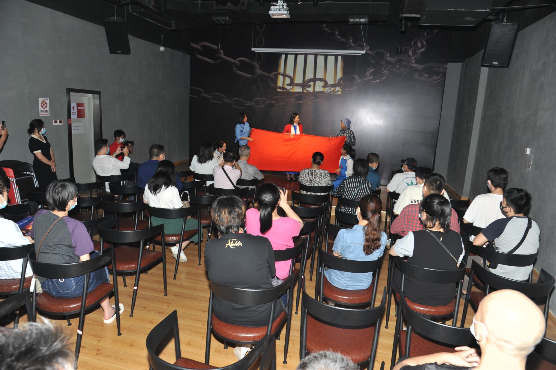 活動首先觀看了沉浸式黨建演出——《紅》?!都t》講堂寓意“心中那一抹中國紅”,是鑄牢中華民族共同體意識社會宣傳教育的創(chuàng)新“課堂”。觀看后,黨員紛紛表示通過電影里的民族音畫《幸福感恩》、詩歌朗誦《我愛你中國》、情景話劇《五四先鋒》、電影原聲表演《紅船之上》、電影小劇場《江姐》等版塊的沉浸式演出,如臨其境地感受到革命年代的種種艱辛,黨之所以歷經(jīng)百年而風(fēng)華正茂、飽經(jīng)磨難而生生不息,就是憑著那么一股革命加拼命的強大精神。