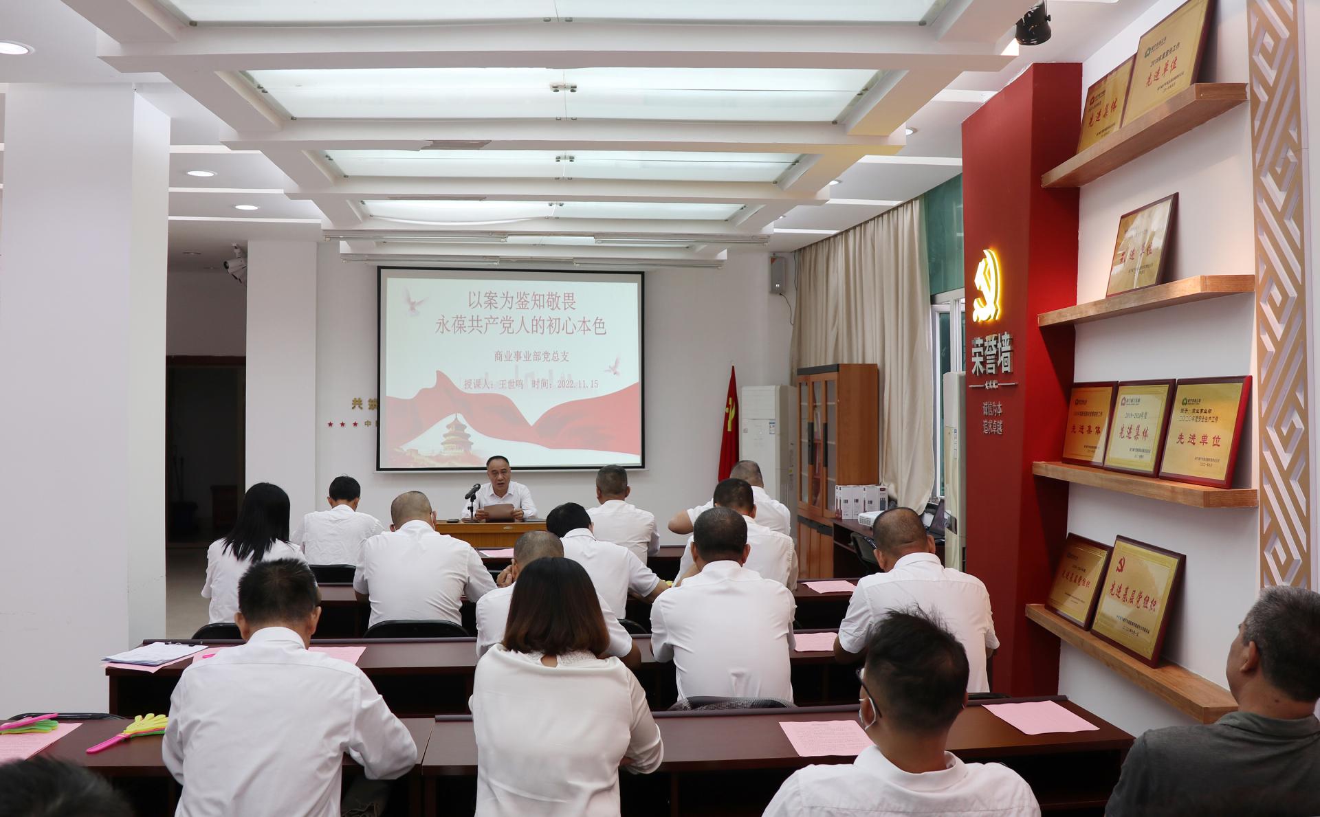 活動(dòng)中,商業(yè)事業(yè)部黨總支書(shū)記王世鳴為全體黨員和入黨積極分子上了題為《以案為鑒知敬畏永葆共產(chǎn)黨人的初心本色》的廉政黨課,強(qiáng)化底線意識(shí)。