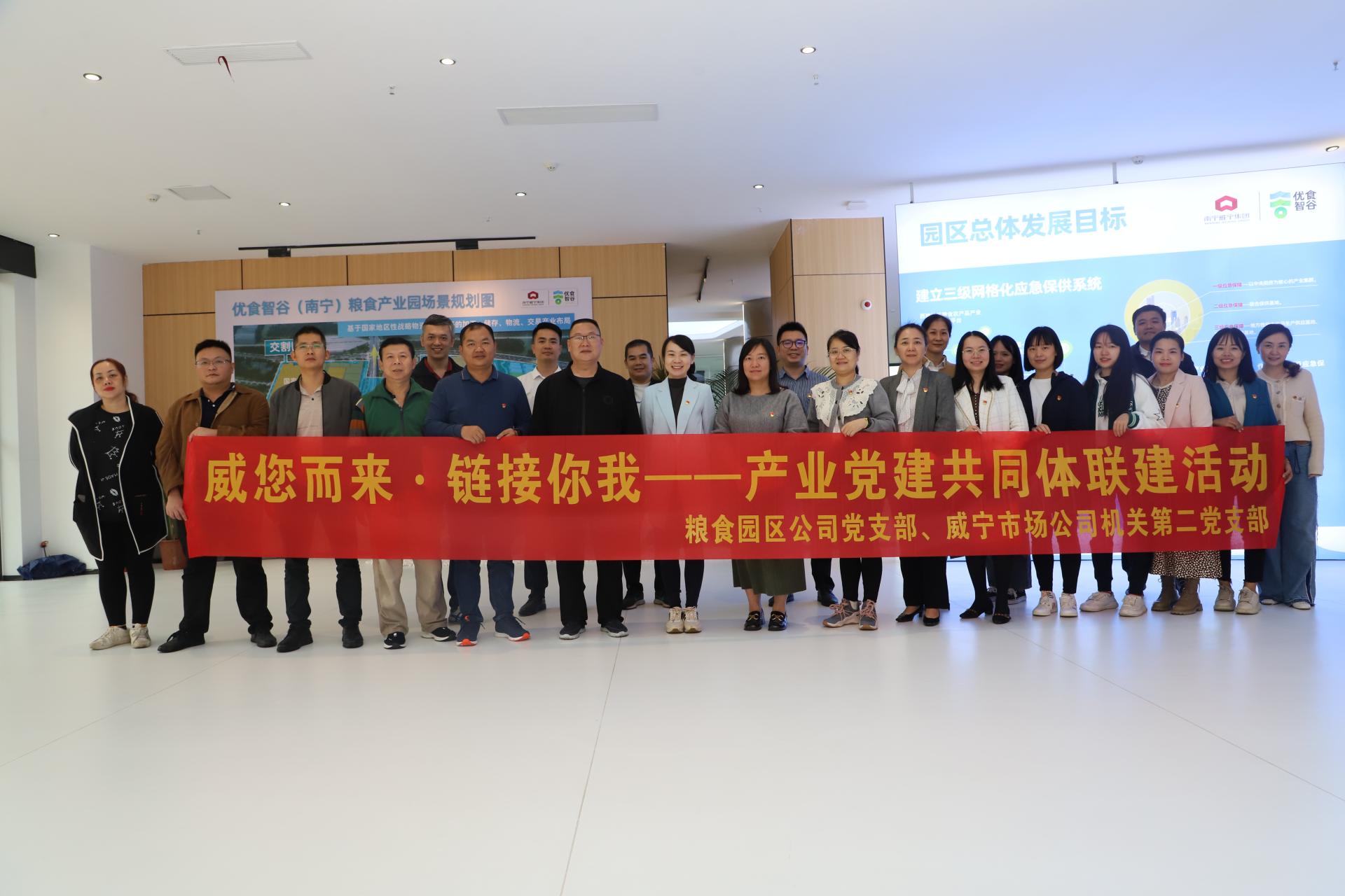 11月25日下午,糧食園區(qū)公司黨支部聯(lián)合威寧市場(chǎng)公司機(jī)關(guān)第二黨支部在廣西(中國(guó)—東盟)糧食物流產(chǎn)業(yè)園,開(kāi)展以“威您而來(lái)·鏈接你我”為主題的產(chǎn)業(yè)黨建共同體聯(lián)建活動(dòng)。此次活動(dòng)主要通過(guò)參觀威鏈云優(yōu)食智谷產(chǎn)業(yè)園,了解產(chǎn)業(yè)園運(yùn)營(yíng)模式和預(yù)制菜板塊發(fā)展規(guī)劃運(yùn)行情況,并結(jié)合黨的二十大精神,開(kāi)展黨建與業(yè)務(wù)融合座談會(huì)。