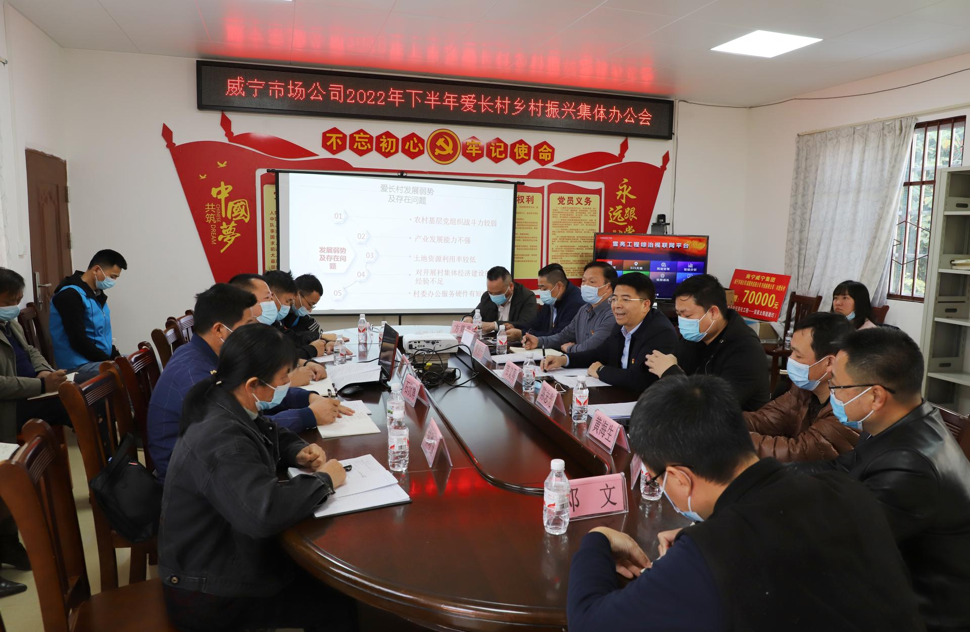 韋義勇指出,鄉(xiāng)村振興戰(zhàn)略是實(shí)現(xiàn)農(nóng)業(yè)農(nóng)村現(xiàn)代化的關(guān)鍵所在,作為幫扶后盾單位,我們要堅(jiān)定不移堅(jiān)持“以人民為中心”的發(fā)展思想,聚焦村民群眾普遍關(guān)注的關(guān)鍵問題,辦好民生實(shí)事,讓幫扶村的老百姓的獲得感更足、幸福感可持續(xù)、安全感更有保障。一是全面強(qiáng)化黨建引領(lǐng)。駐村第一書記和村“兩委”干部要充分發(fā)揮基層黨組織戰(zhàn)斗堡壘和村內(nèi)黨員先鋒模范作用,落實(shí)黨員與致富帶頭人的“雙發(fā)展、雙促進(jìn)”工作要求,打造“黨建+”品牌,推動(dòng)特色產(chǎn)業(yè)可持續(xù)、高質(zhì)量發(fā)展。二是認(rèn)真梳理年內(nèi)各項(xiàng)工作。要通過列清單、查臺(tái)賬等方式,對(duì)已完成工作進(jìn)行再完善、再補(bǔ)充,對(duì)仍在開展的工作快馬加鞭、迎頭趕上,對(duì)存在困難及進(jìn)度緩慢的項(xiàng)目進(jìn)行全面細(xì)致地調(diào)研,全力確保年內(nèi)各項(xiàng)工作按時(shí)保質(zhì)完成。三是科學(xué)謀劃2023年各項(xiàng)工作。要嚴(yán)格按照“產(chǎn)業(yè)發(fā)展,設(shè)計(jì)先行”工作原則,提升科學(xué)統(tǒng)籌規(guī)劃能力,為幫扶村特色產(chǎn)業(yè)創(chuàng)出新路子、做出新成效打穩(wěn)基礎(chǔ)。四是主動(dòng)建強(qiáng)干部隊(duì)伍。駐村第一書記和村“兩委”干部要在工作中向書本學(xué)、向?qū)嵺`學(xué)、向群眾學(xué),及時(shí)總結(jié)成功經(jīng)驗(yàn)及優(yōu)秀做法,激活干事創(chuàng)業(yè)熱情,全面提升干部隊(duì)伍的綜合素質(zhì)。同時(shí),韋義勇代表南寧威寧集團(tuán)、威寧市場(chǎng)公司表態(tài),將依托南寧威寧集團(tuán)各業(yè)務(wù)板塊平臺(tái)優(yōu)勢(shì),助力寨鹿村、愛長(zhǎng)村特色產(chǎn)業(yè)蓬勃發(fā)展。此外,希望寨鹿村和愛長(zhǎng)村駐村第一書記強(qiáng)化溝通交流,互相取長(zhǎng)補(bǔ)短,共謀發(fā)展。
