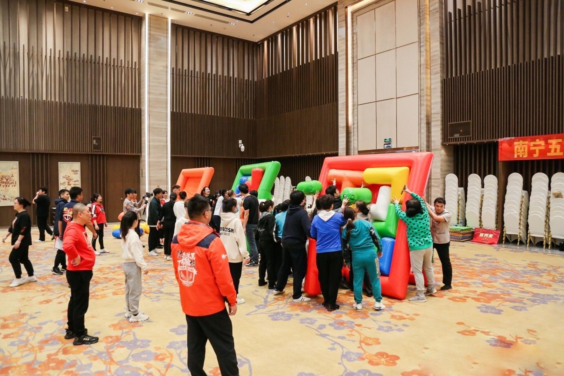 基業(yè)長青、飛盤嘉年華、俄羅斯方塊、使命必達(dá)……近日,在五象山莊11號(hào)樓大宴會(huì)廳,一場以“團(tuán)結(jié)奮斗,超越期望”為主題的團(tuán)建活動(dòng)現(xiàn)場如火如荼,五象山莊公司共160多名職工踴躍參與。