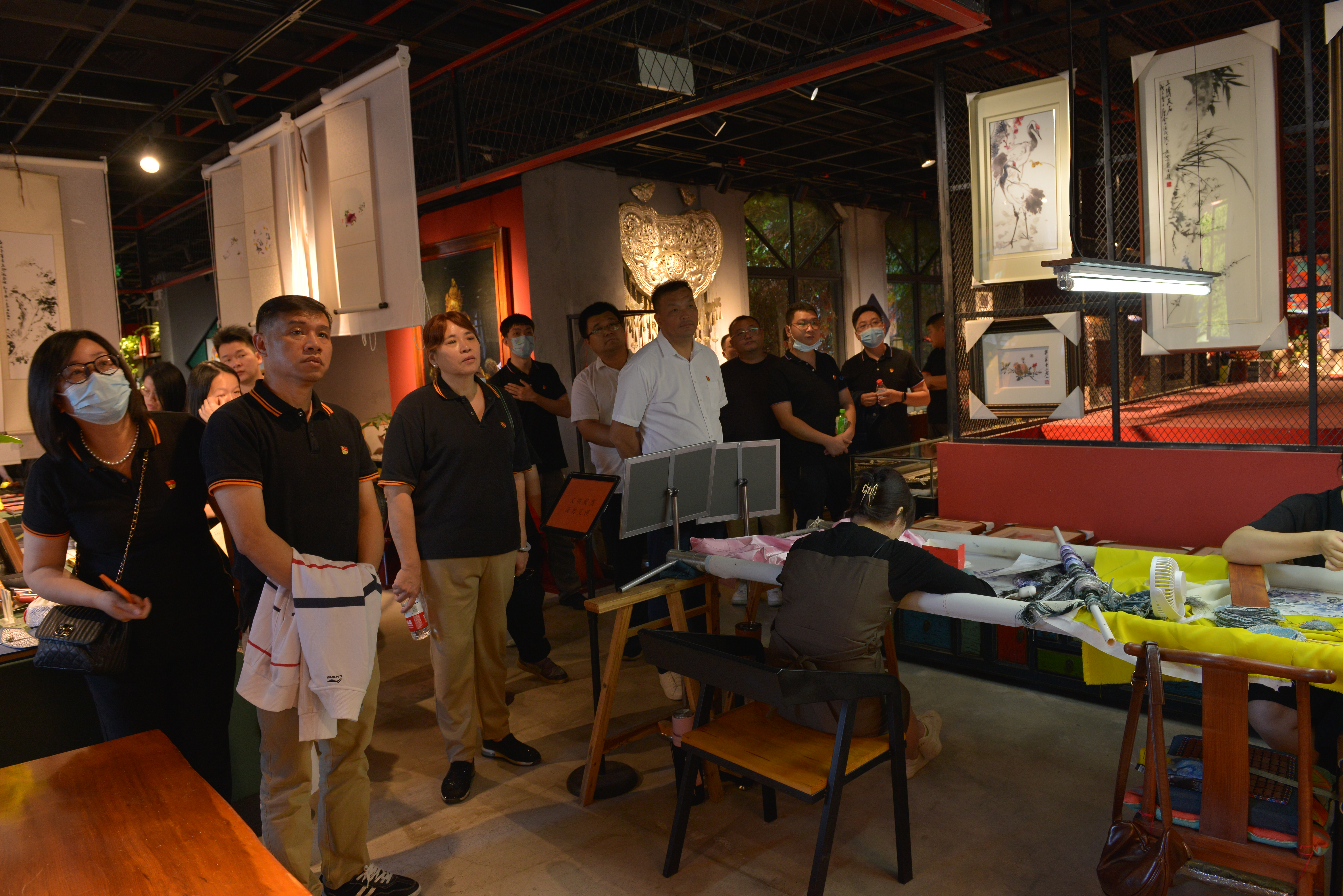 組織黨員到百益上河城非遺生活館參觀少數(shù)民族織繡