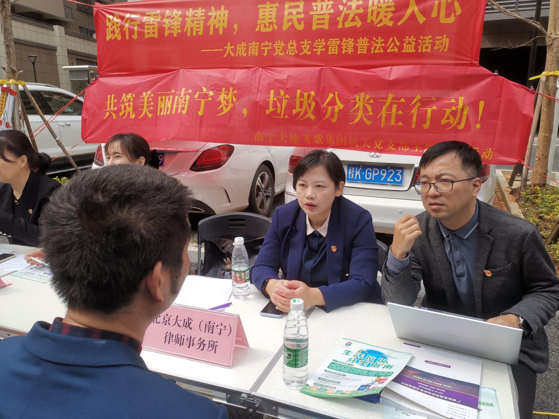 為深入學(xué)習(xí)貫徹黨的二十大精神,全面貫徹落實(shí)習(xí)近平總書(shū)記對(duì)深入開(kāi)展學(xué)雷鋒活動(dòng)作出的重要指示精神,進(jìn)一步弘揚(yáng)“奉獻(xiàn)、友愛(ài)、互助、進(jìn)步”的志愿服務(wù)精神,2023年3月3日,在第60個(gè)學(xué)雷鋒紀(jì)念日到來(lái)之際,南寧大地飛歌集團(tuán)公司黨委充分發(fā)揮黨建領(lǐng)航作用,聯(lián)合下屬監(jiān)管單位南寧民影公司及北京(大成)律師事務(wù)所等多家單位到人民東社區(qū)、百花嶺社區(qū)、桂花社區(qū)共同開(kāi)展了以“綠城閃耀志愿紅 文明實(shí)踐學(xué)雷鋒”為主題的志愿服務(wù)活動(dòng),以實(shí)際行動(dòng)踐行雷鋒精神。
