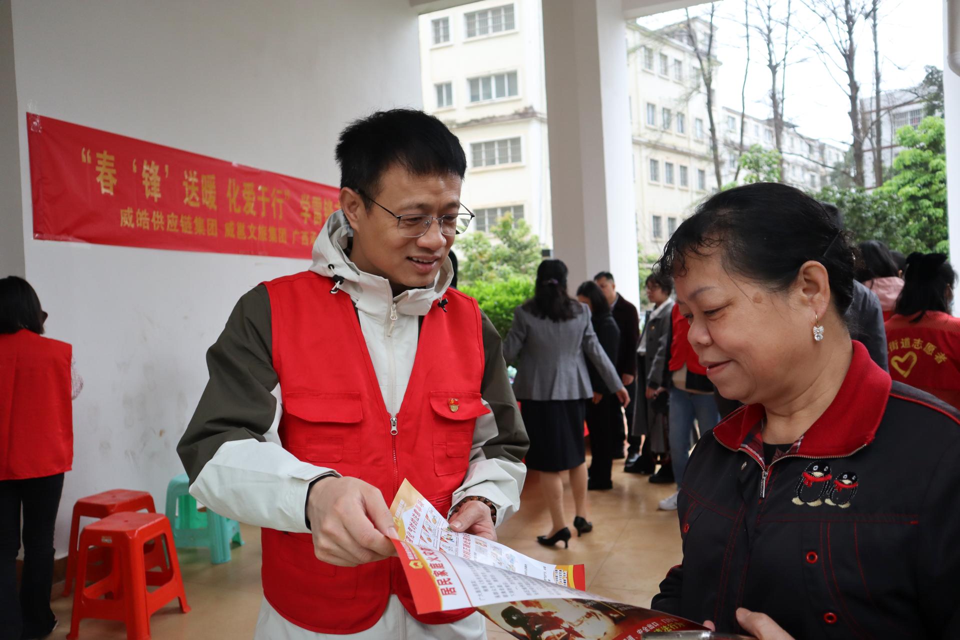三月春風(fēng)暖人心,志愿精神耀邕城。為進(jìn)一步弘揚(yáng)“奉獻(xiàn)、友愛、互助、進(jìn)步”的志愿服務(wù)精神,推動(dòng)新時(shí)代文明實(shí)踐活動(dòng)走深走實(shí),威邕文旅集團(tuán)黨委及所屬3個(gè)黨支部聯(lián)合3家共建單位立足基層、服務(wù)社區(qū),圍繞普法宣傳、垃圾分類、健康生活、攝影推廣、特殊群體關(guān)愛等多個(gè)角度,策劃開展了一系列的文明實(shí)踐志愿服務(wù)活動(dòng),組織志愿者45人共同為市民群眾奉愛心、獻(xiàn)力量,共計(jì)服務(wù)市民群眾約300多人次。