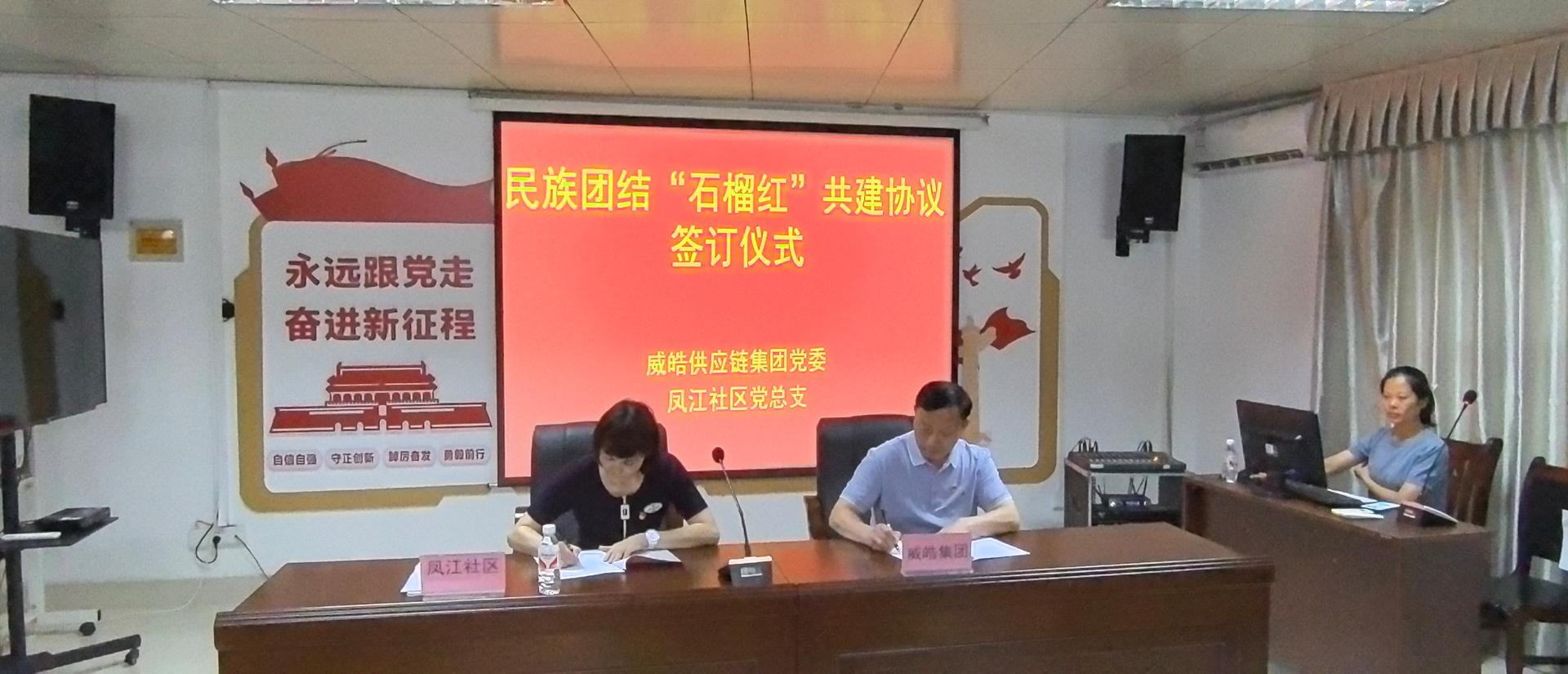 據(jù)悉,鳳江社區(qū)是民族團結(jié)示范社區(qū),今年以來,威皓供應鏈集團與鳳江社區(qū)聯(lián)合開展了3場不同主題的社企聯(lián)建志愿服務活動,點亮“社區(qū)朋友圈”的同時,拓寬了雙方新時代文明實踐活動的載體,夯實了威皓供應鏈集團社企聯(lián)建的基礎。威皓供應鏈集團黨委副書記黃俏仟在交流中表示,本次共建協(xié)議的簽訂是深入學習貫徹習近平新時代中國特色社會主義思想的一個重要載體,也是新形勢下不斷加強基層志愿服務和民族團結(jié)活動的有效途徑。希望雙方在今后的共建工作中,積極探索企業(yè)與社區(qū)互促互助的創(chuàng)新機制,通過機制共聯(lián)、信息共享、活動共辦等多項舉措,形成資源共享、優(yōu)勢互補、共駐共建的良好態(tài)勢,切實推動社區(qū)文明和諧發(fā)展。