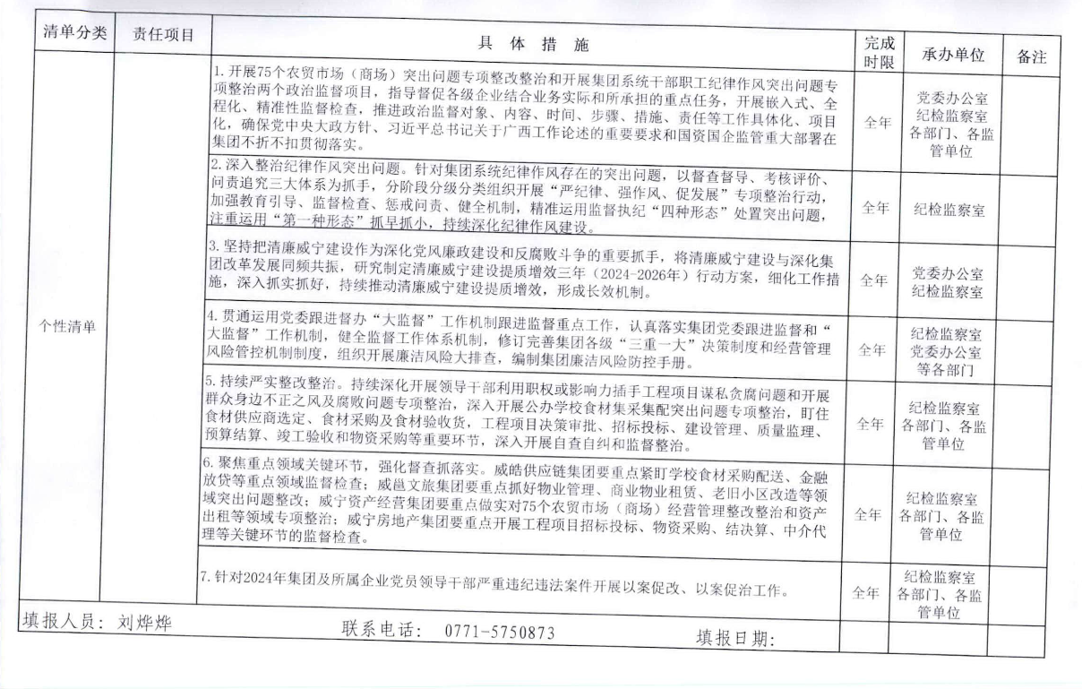 南寧威寧集團(tuán)2024年黨風(fēng)廉政建設(shè)領(lǐng)導(dǎo)班子、主要負(fù)責(zé)人及其他班子成員主體責(zé)任清單