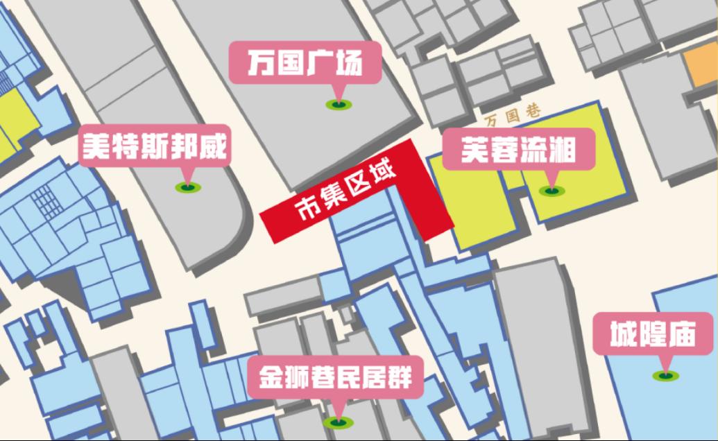 (注:上圖為市集預設區(qū)域,實際使用位置范圍以現(xiàn)場現(xiàn)狀擺放情況為準)