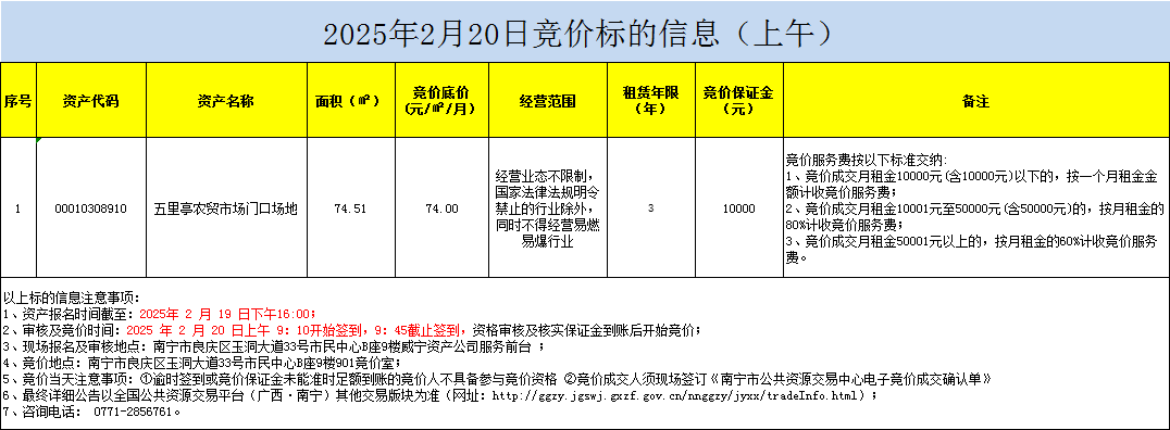 2025年2月20日競(jìng)價(jià)標(biāo)的信息(上午)