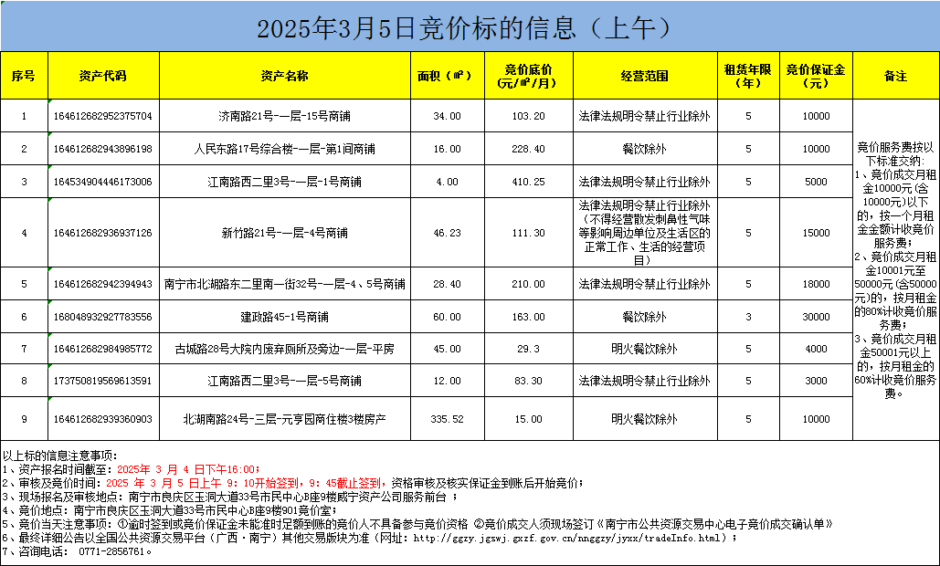 2025年3月5日競價(jià)標(biāo)的信息(現(xiàn)場競價(jià))