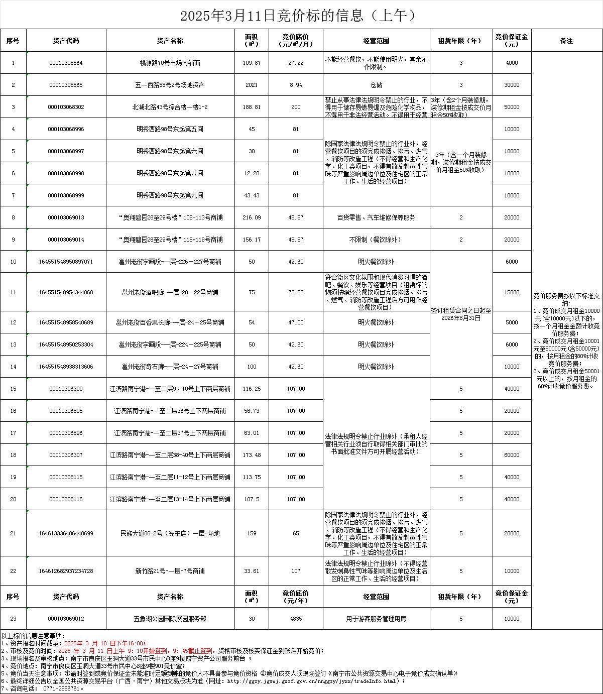 2025年3月11日競價標的信息(現(xiàn)場競價)