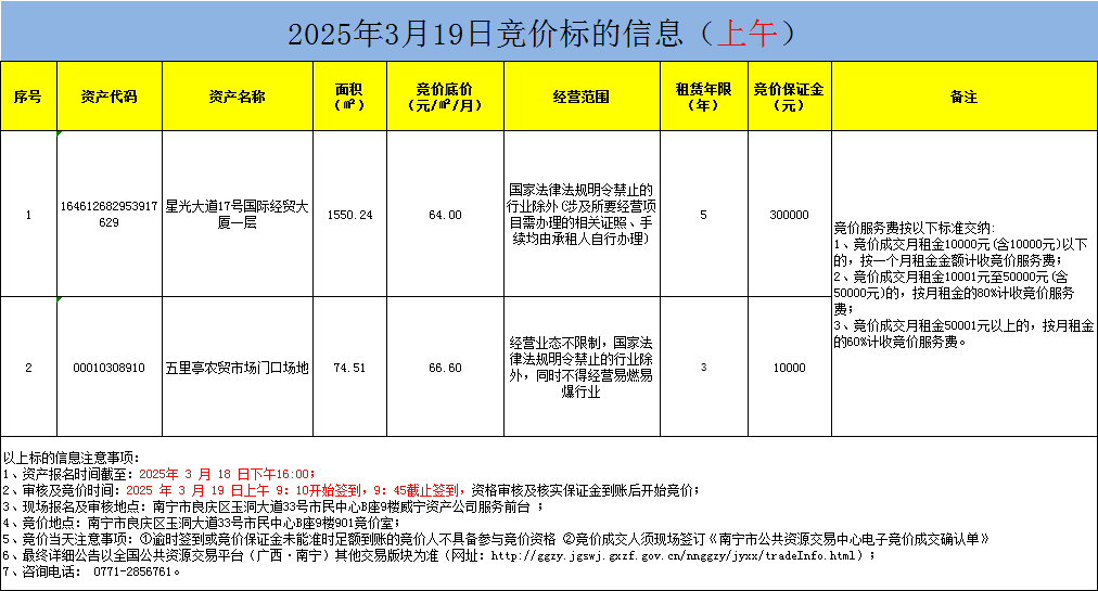 2025年3月19日競價標(biāo)的信息(現(xiàn)場競價)