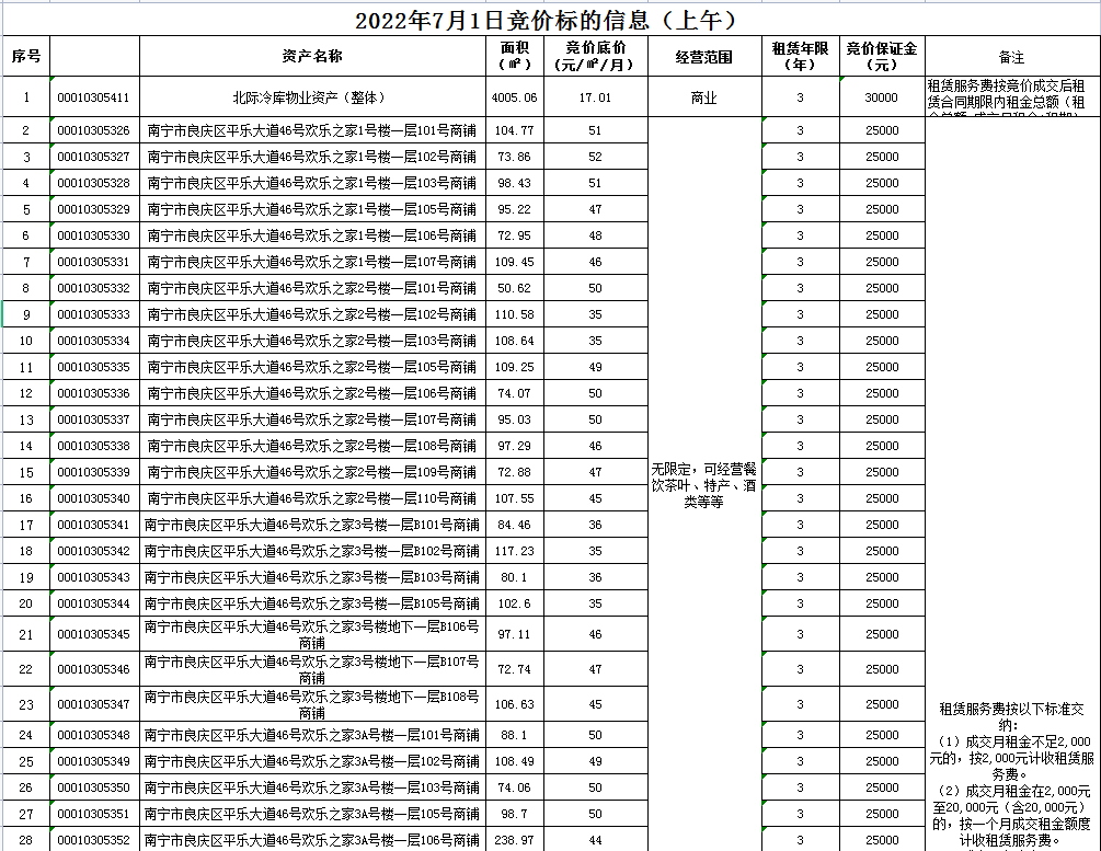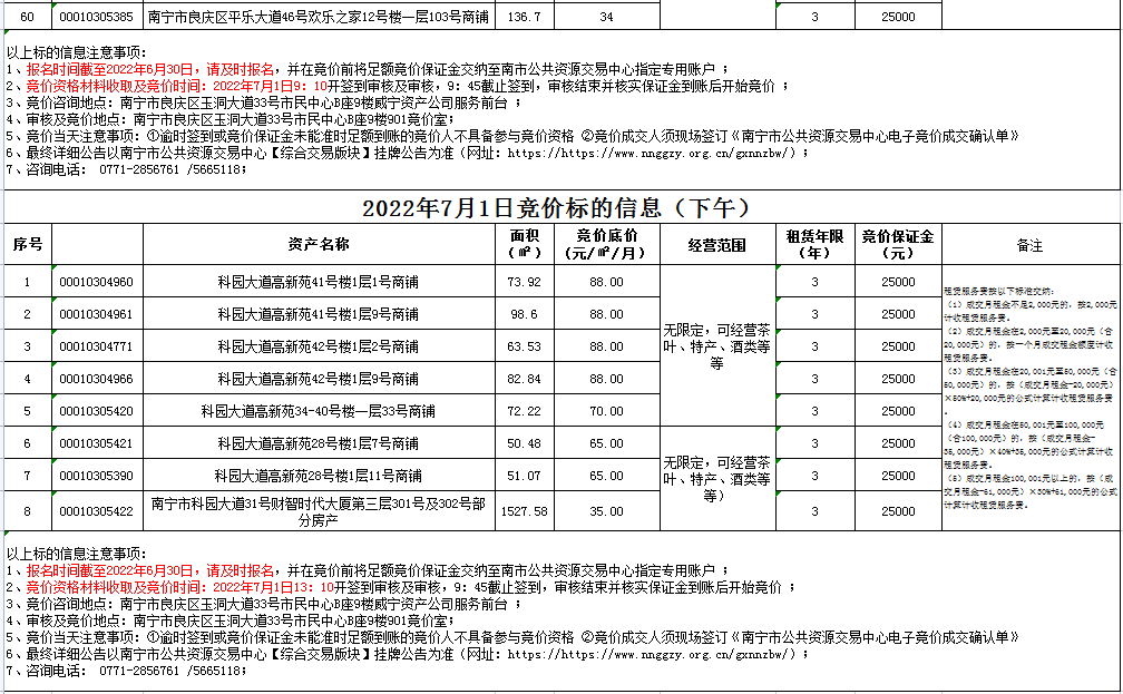 威寧資產(chǎn)公司2022年7月1日公開競價(jià)標(biāo)的信息