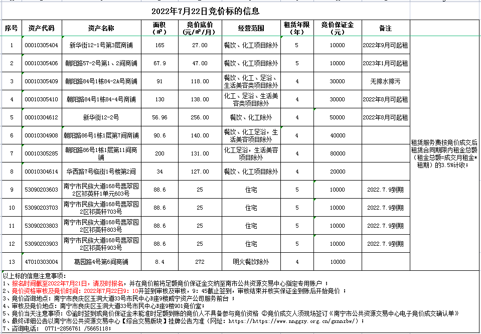 威寧資產(chǎn)公司2022年7月22日公開競價標的信息