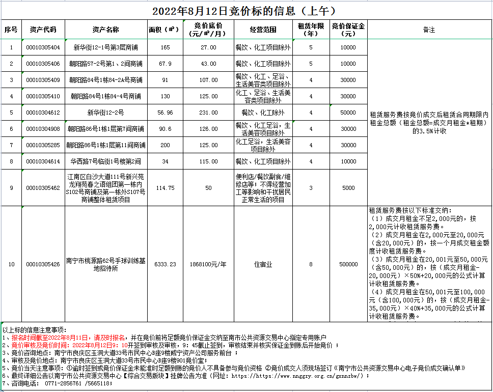 威寧資產(chǎn)公司2022年8月12日公開競(jìng)價(jià)標(biāo)的信息