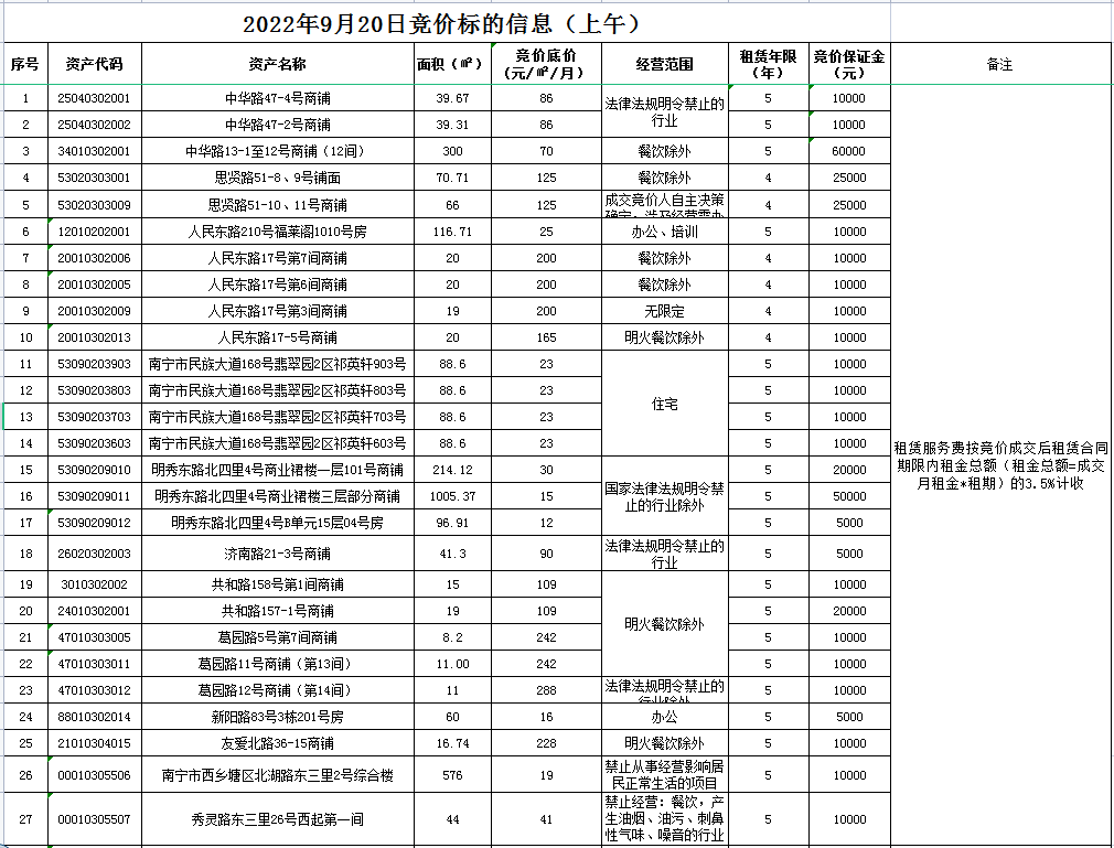 威寧資產(chǎn)公司2022年9月20日公開競價標(biāo)的信息
