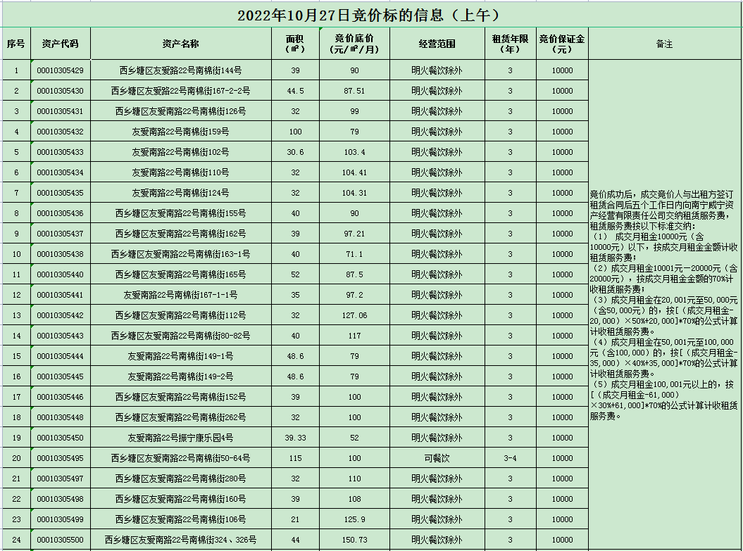 2022年10月27日競價(jià)標(biāo)的信息