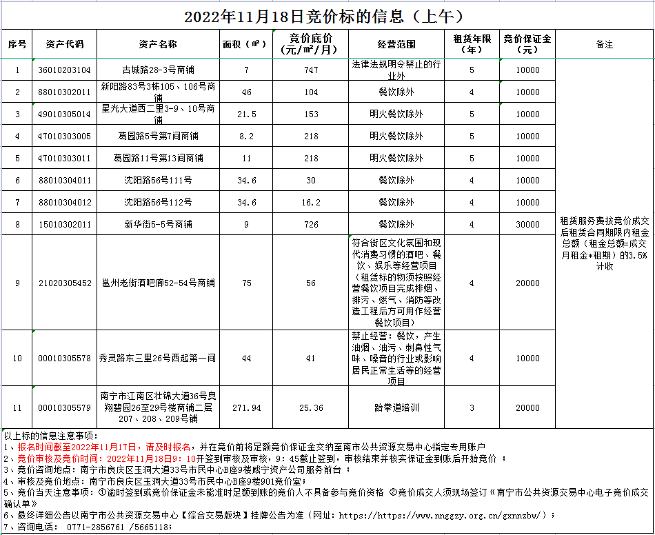 2022年11月18日競價標(biāo)的信息