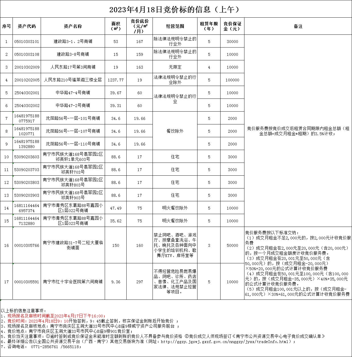 2023年4月18日競(jìng)價(jià)標(biāo)的信息