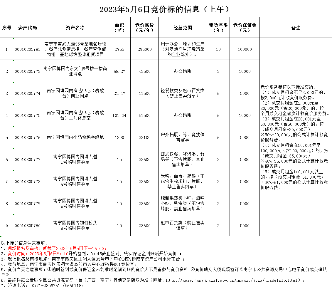 2023年5月6日競(jìng)價(jià)標(biāo)的信息