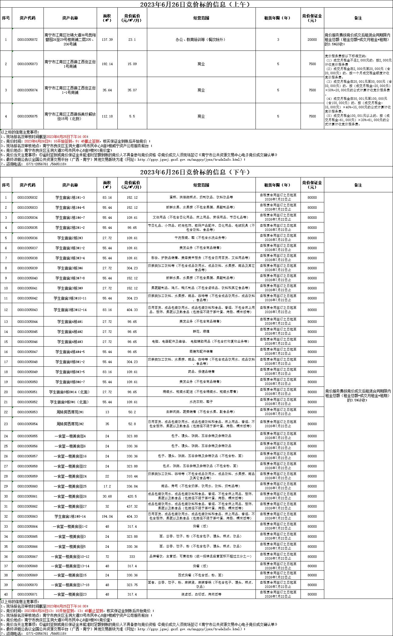 2023年6月26日競價標(biāo)的信息
