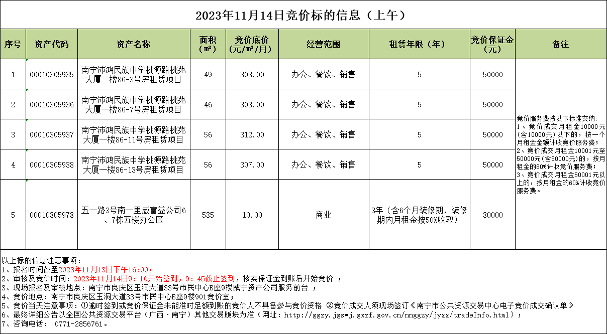 2023年11月14日競(jìng)價(jià)標(biāo)的信息