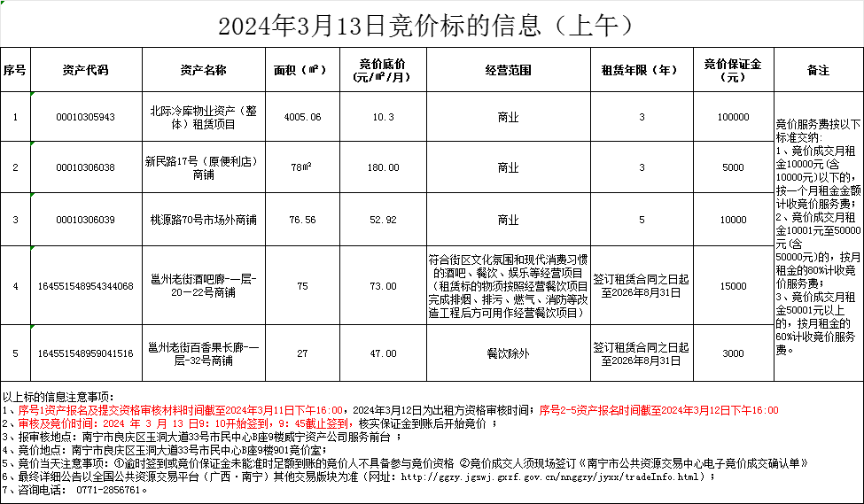 2024年3月13日競(jìng)價(jià)標(biāo)的信息(現(xiàn)場(chǎng)競(jìng)價(jià))