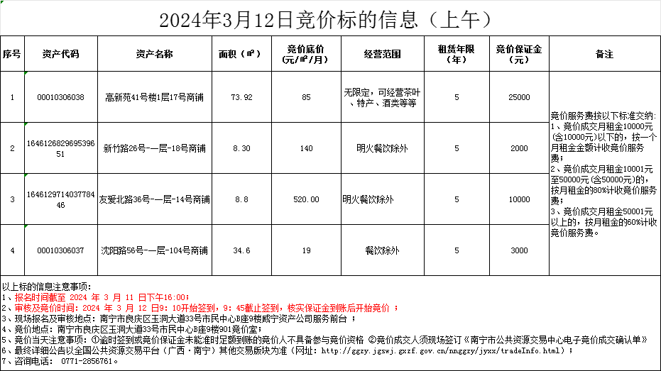 2024年3月12日競價標的信息(現(xiàn)場競價)
