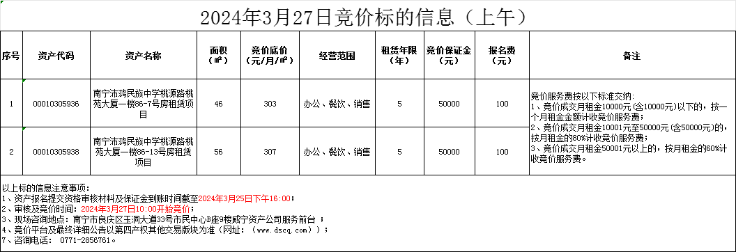 2024年3月27日競價標的信息(線上競價)