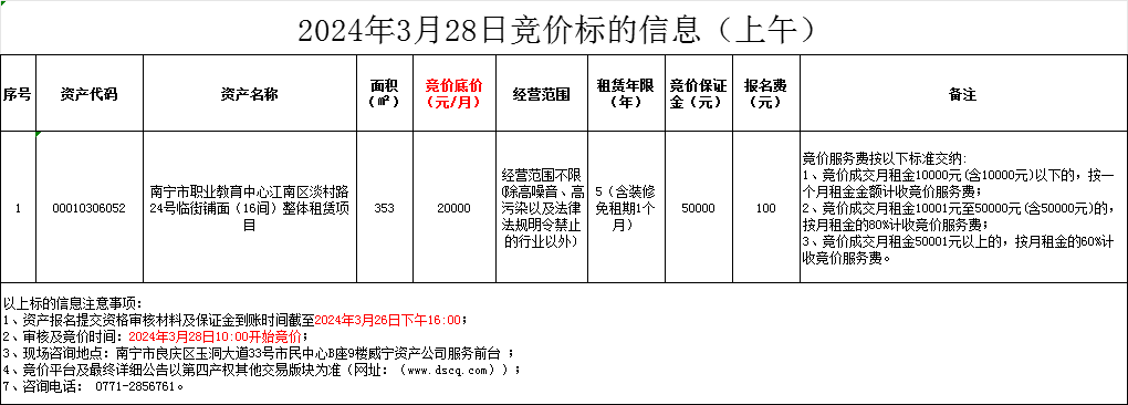 2024年3月28日競價標(biāo)的信息(線上競價)