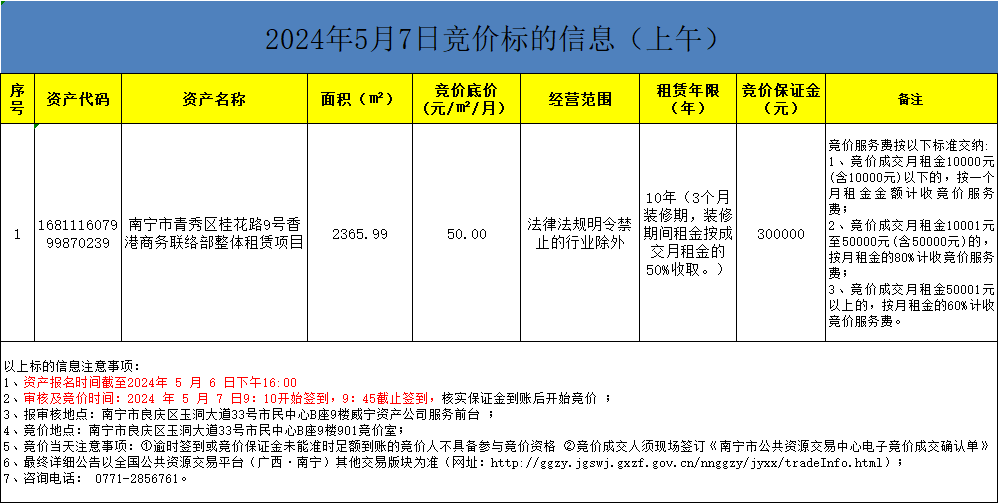2024年5月7日競價標的信息(現(xiàn)場競價)