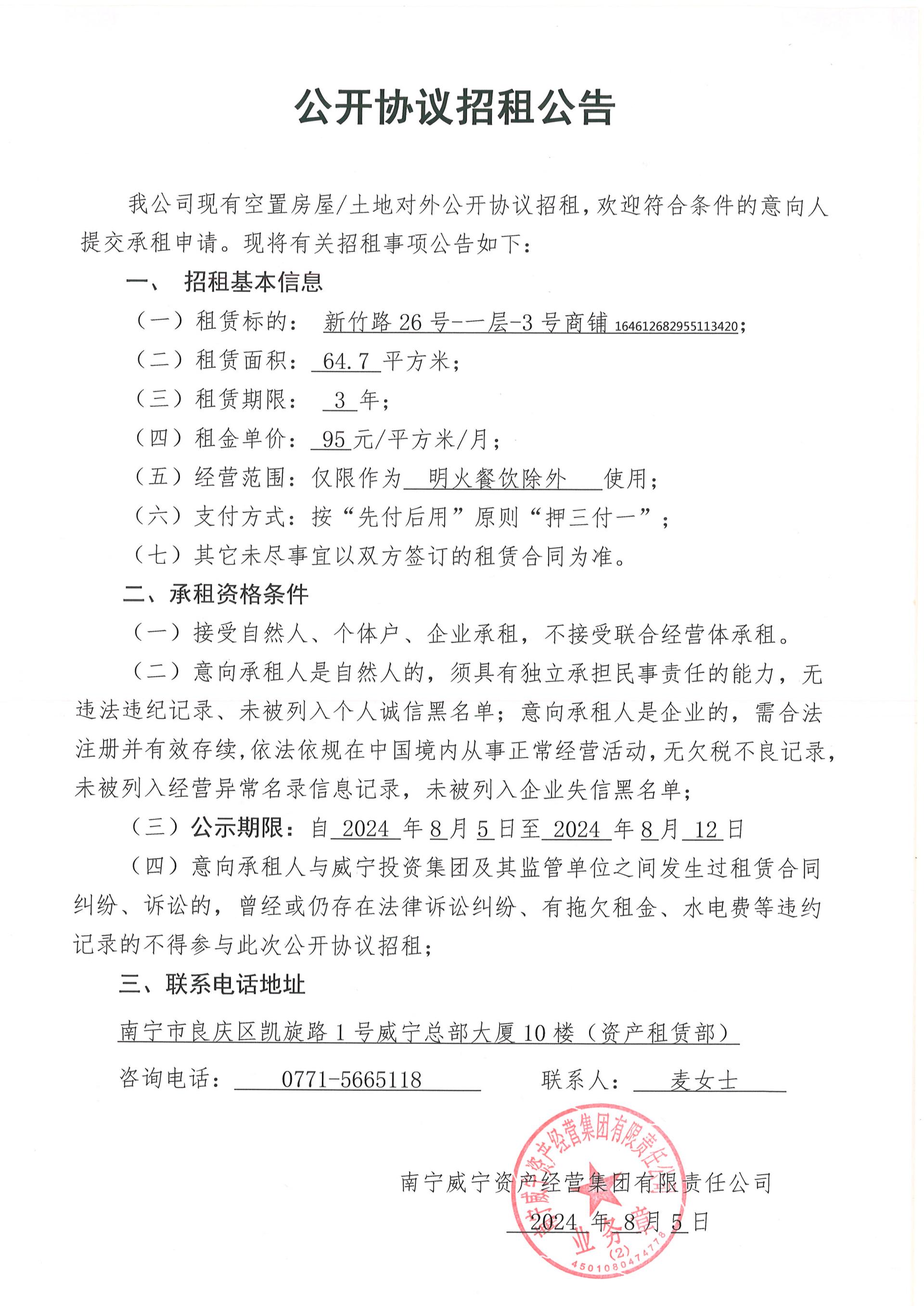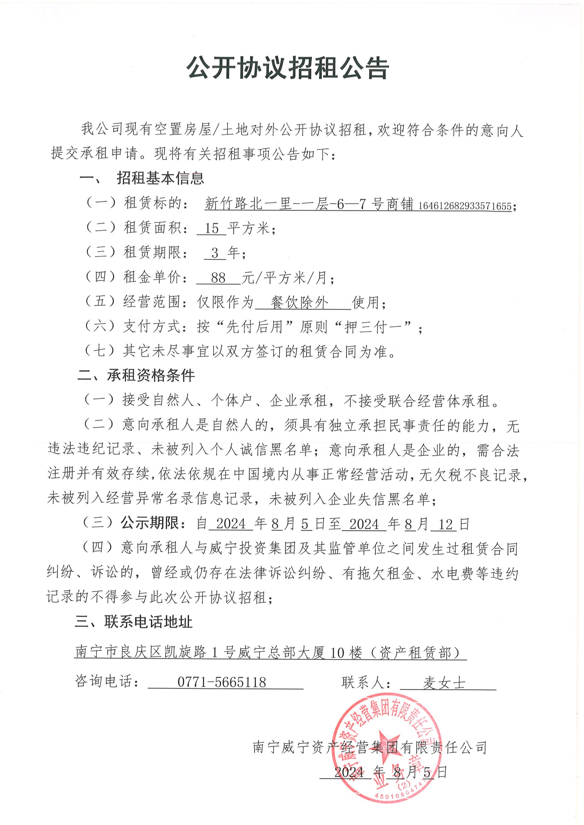 新竹路26號(hào)一層3號(hào)鋪及新竹路北一里一層6-7號(hào)商鋪公開協(xié)議招租公告
