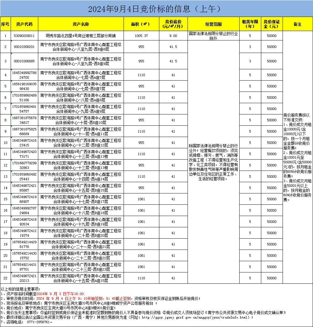 2024年9月4日競價標的信息(現(xiàn)場競價)
