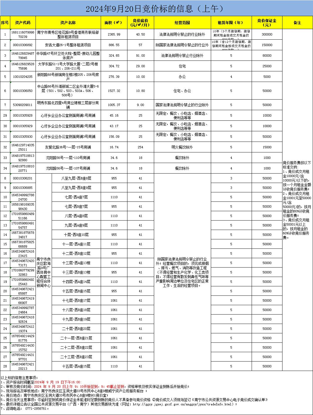 2024年9月20日競價標的信息(現(xiàn)場競價)